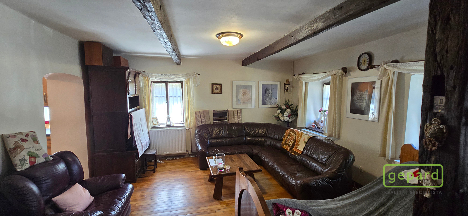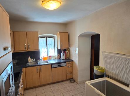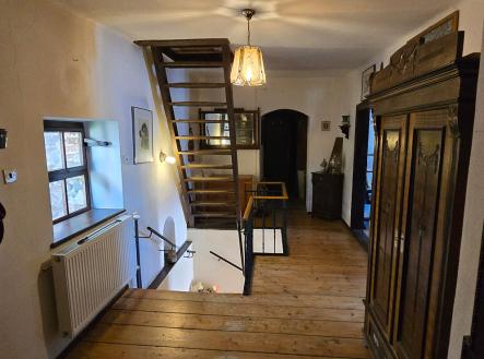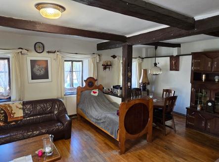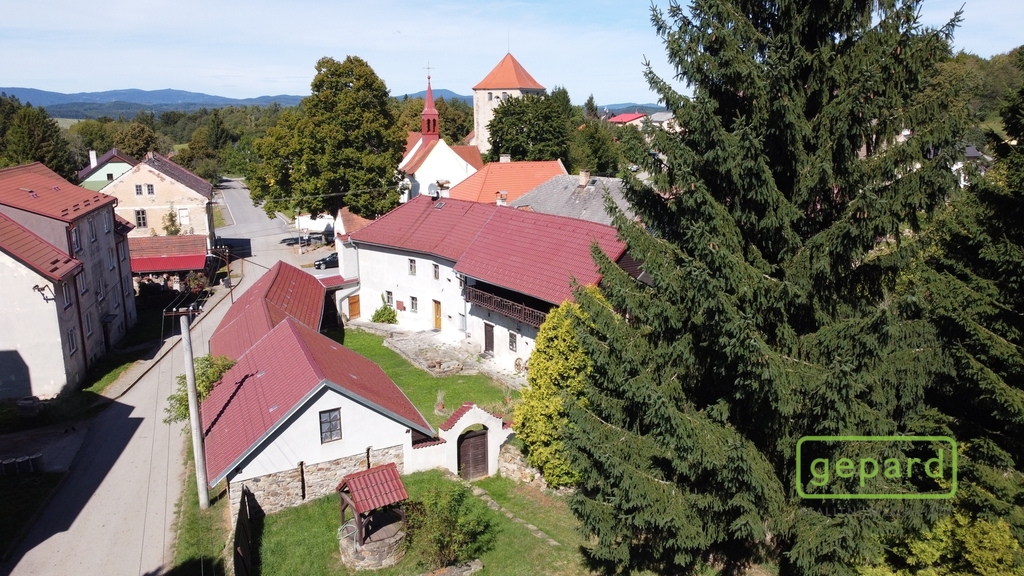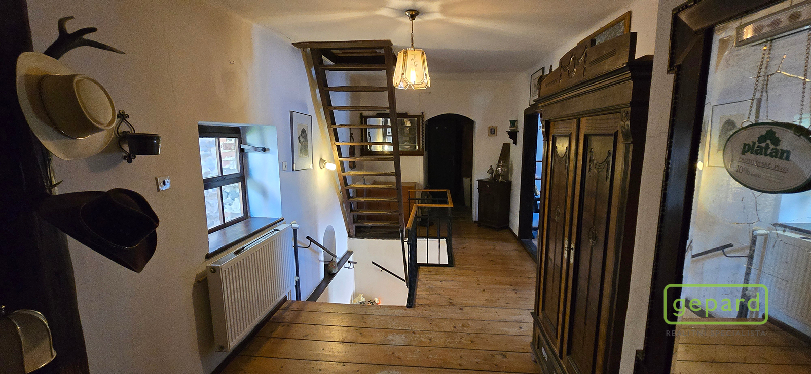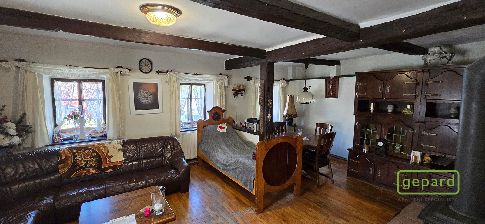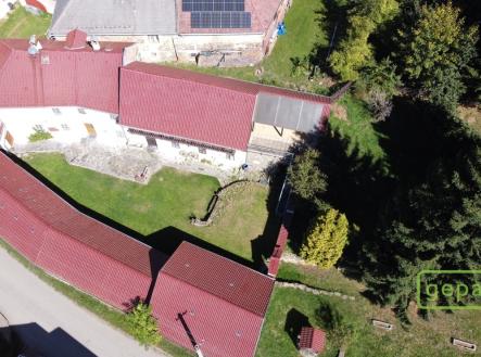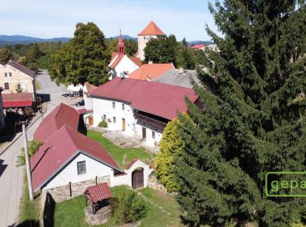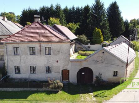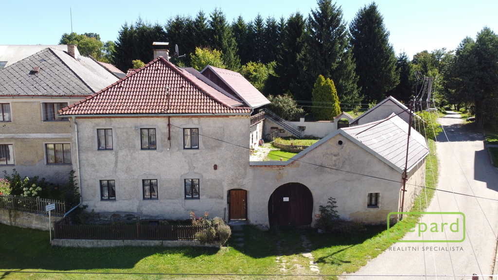 Prodej domu, vesnického stavení s velkou zahradou v obci Slavkov nedaleko Českého Krumlova. Celková plocha prodávaných pozemků má výměru 1.353m2 a skládá ze zastavěné plochy a nádvoří o 746m2 a přiléhající zahrady se vzrostlými stromy o 607m2. Hlavní část stavení obytná část na níž navazuje rozlehlá stáj a v dalším nadzemním podlaží i rozlehlé půdní prostory. Na protější straně uzavřeného dvora najdeme dílnu, sklad paliva a prostory pro venkovní posezení. Obytná část, vhodná jak k trvalému bydlení tak i rekreaci, se skládá v přízemí z velkého obývacího pokoje, kuchyně, sociálního zařízení a kotelny. Výstupem po schodišti se dostaneme do 2.NP se třemi pokoji, šatnou, samostatnou toaletou a výstupem do půdních prostor. Půdní prostory z levé části budovy mohou být použity k případné přestavbě či vestavbě se zachováním pavlače a samostatné terasy vedoucí na zahradu. Podívejte se prosím na naší fotogalerii. Nemovitost je v dobrém stavu a nachází se v obci Slavkov, mezi Bohdalovicemi a Kájovem na okraji velkých lesních celků šumavského podhůří. Vzdálenost do Českého Krumlova 13km, Větřní 6km a na Lipno, Černá v Pošumaví 12km. Energetická třída PENB „G“ je uvedena z formálních důvodů dle zákona č. 103/2015 Sb., po obdržení průkazu energetické náročnosti budovy bude uvedena skutečná hodnota. Více informací na níže uvedeném telefonním čísle, prohlídky z naší kanceláře v Českém Krumlově po předchozí domluvě - klíče máme k dispozici. Možnost zajištění financování koupě této nemovitosti prostřednictvím zvýhodněného hypotéčního úvěru.