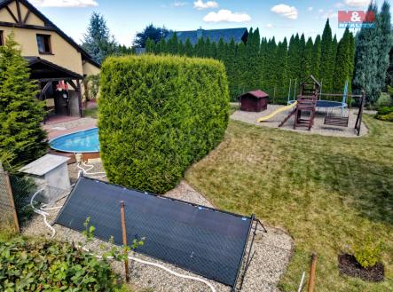 Představte si večer, kdy místo koukání na televizi pozorujete plameny v krbu, nebo sedíte s vínem v ruce na zastřešené terase, zatímco děti sbírají vlastní ostružiny ze zahrady. Žádná reklama na štěstí – tohle je skutečnost na Myslivecké ulici v Bohumíně Skřečoni. Moderní dům nabízí v přízemí vzdušný 2+kk s koupelnou, v patře 3 další místnosti s vlastní koupelnou. Výjimečně úsporná nemovitost s nízkými náklady kombinuje plynový kotel s krbem, jehož rozvody vytápí všechny místnosti. Za prosklenými dveřmi čeká terasa s ručně kovaným grilem, vyhřívaný bazén a zahrada (978 m²) s ovocnými stromy. Tato 140 m² oáza klidu stojí na slepé ulici, kde každý dům je originál a sousedé jsou přátelé. Do školy i školky dojdete za 3 minuty, do centra Bohumína dojedete za 4 minuty a do Ostravy za 18 minut. Na virtuální prohlídku se můžete podívat hned, ale věřte - 3D sken nezachytí vůni na zahradě ani ten pocit, když za sebou zavřete elektrickou bránu a zavoláte: "Miláčku, děti, jsem doma!"