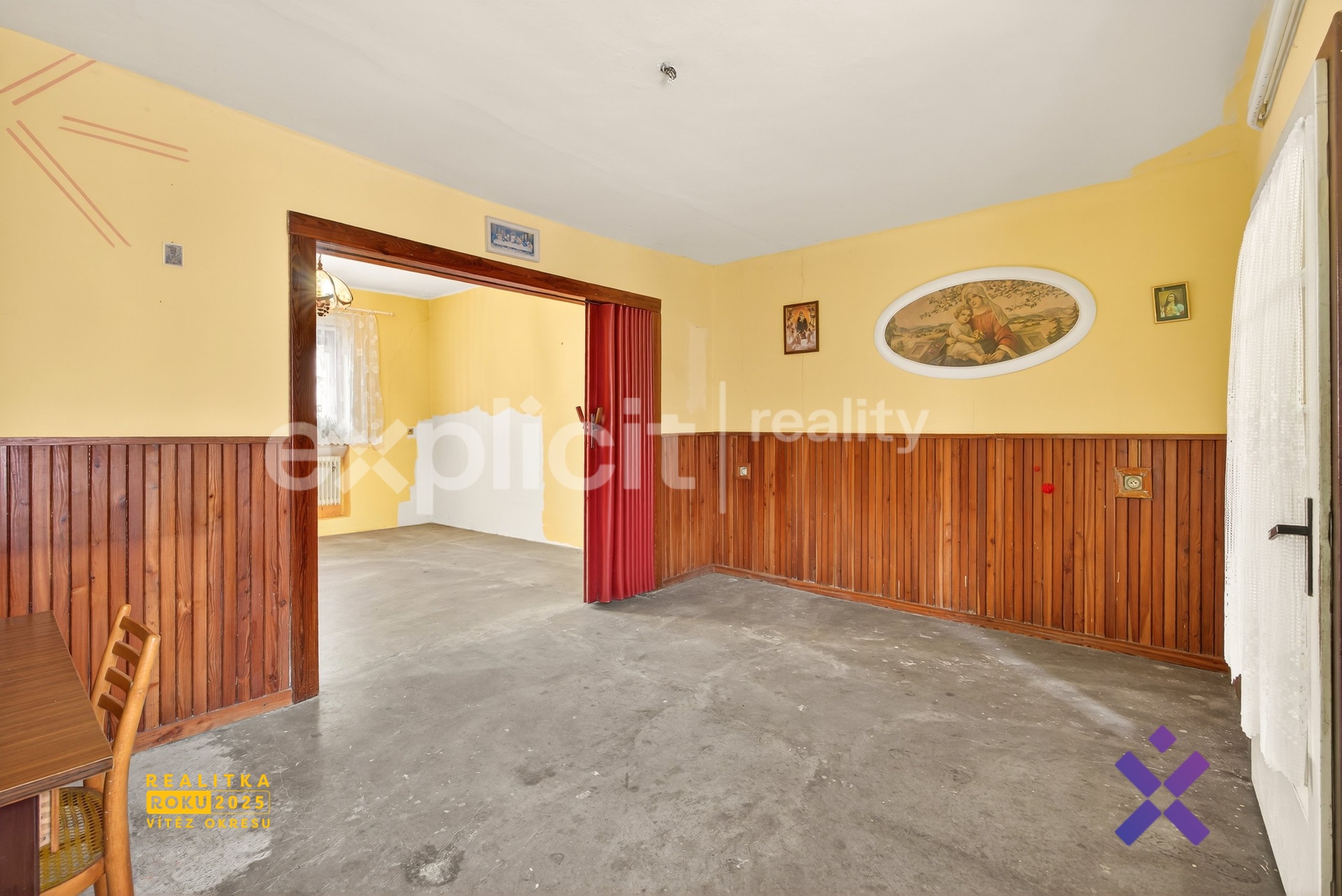 Nabízím k prodeji rodinný dům o dispozici 4+1 s podlahovou plochou 98 m² na pozemku o výměře 186 m², situovaný na ulici Mánesova v Bojkovicích. Nemovitost je určena k rekonstrukci, což novému majiteli otevírá široké možnosti úprav dle vlastních představ a potřeb. Dispozice domu umožňuje oddělení společenské a klidové části. Vstup je ze dvora, odkud se vchází do menší chodby. Po pravé straně se nachází jeden z pokojů, po levé straně jsou přístupné ostatní místnosti. Dům nabízí celkem čtyři prázdné a nevybavené pokoje připravené k úpravám. Součástí je kuchyně s kuchyňskou linkou, volně stojící lednicí a pračkou, na kterou navazuje praktická špajzka. K dispozici je koupelna a samostatné WC. Uzavřený dvůr poskytuje soukromí i prostor pro další využití. Dům je postaven z cihel Porotherm, elektřina je v původním hliníkovém provedení. K dispozici je plynová přípojka a nový kondenzační kotel, vytápění je možné rovněž klimatizační jednotkou. Střešní trámy jsou přibližně 30 let staré, přívod vody je nový a odpad je řešen septikem. Nemovitost je vhodná pro zájemce hledající dům s potenciálem v klidné lokalitě s blízkostí přírody. Budu se těšit na společné prohlídky tohoto domu. Ing. Martin Souček, realitní makléř Explicit Reality.