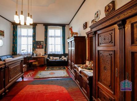 Nabízíme Vám ke koupi velice unikátní nemovitost na okraji malé obce Damnov, vzdálené 6 km severně od sjezdu z dálnice D5 (exit 128), 10 km od Boru a 17 km od Tachova či chcete-li 1,5 hodiny z centra Prahy. Jednopatrový, částečně podsklepený rodinný dům s podkrovím nabízí široké spektrum využití. Od rodinného bydlení či rekreace, až po např. sídlo firmy. V přízemí je z hlavního vchodu vstup do prostorné chodby, ze které se dostaneme do velkého obývacího pokoje, do kuchyně s kachlovými kamny, linkou s vestavěnou myčkou a el. sporákem. Z kuchyně je vchod do jídelny a přes ní do ložnice. Z chodby se dále dostaneme do koupelny, do technické místnosti, na schodiště do patra a do chodbičky vedoucí k zadnímu vchodu do objektu. U zadního vchodu se nachází zastřešená pergola s krbem. V patře je prostorná chodba, ze které se dostaneme do pokoje pro hosty, do 3 dalších pokojů, do obývacího pokoje s vchodem na terasu a též do koupelny se sprchovým koutem, WC a umyvadlem. V přízemí je dům vytápěn ústředním topením napojeným na tepelné čerpadlo, možné je též využít krbová kamna. V patře jsou lokální topidla na tuhá paliva. Voda je přivedena z obecního vodovodu, možné je též využít studnu s užitkovou vodou na zahradě. Odpad je sveden do jímky. K domu náleží udržovaná zahrada a parkoviště před domem se zámkovou dlažbou. Neváhejte a domluvte si prohlídku na této nevšední nemovitosti.