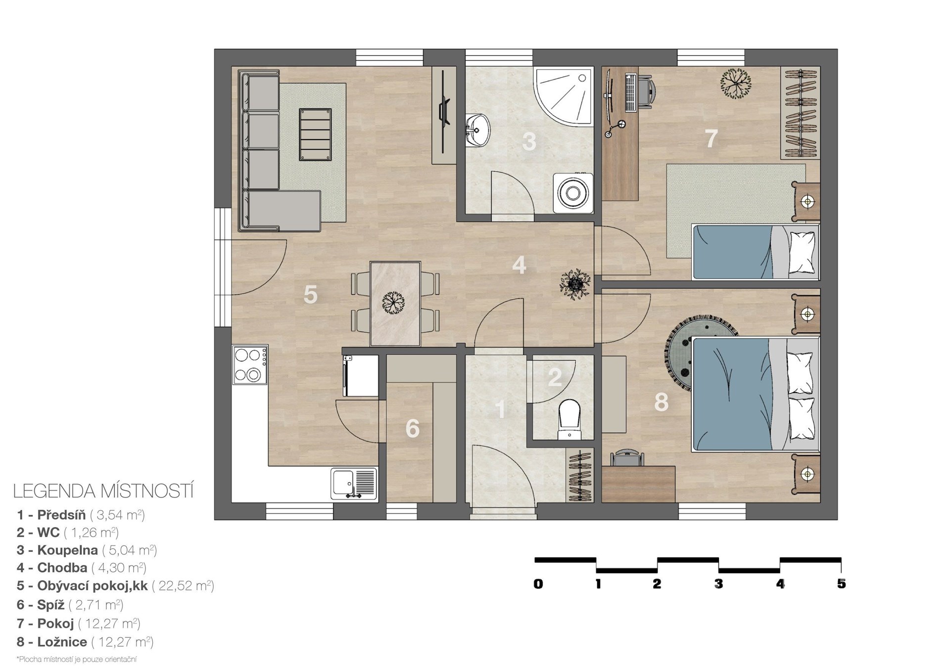 Tento rodinný dům se nachází v malebné vesnici Borotice, známé svou poklidnou atmosférou a výbornou dopravní dostupností. Dům byl postaven v roce 2015 a nabízí komfortní bydlení ve vynikajícím stavu na parcele o celkové rozloze 590 m². Dispozice domu je 3+kk a užitná plocha 64 m². Podrobněji se podívejte na půdorys domu. K domu přijedete po vydlážděném nájezdu, který odděluje brána. ▲vstupní chodba 3,54 m² ▲ WC 1,26 m² ▲ koupelna se sprchovým koutem 5,04 m² ▲ obývací pokoj a kuchyňský kout 22,52 m² ▲ spíž 2,71 m² ▲ pracovna 12,27 m² ▲ ložnice 12,27 m² Prostorná zahrada o rozloze 512 m² je ideální pro rodinné aktivity a relaxaci, doplněna je i o krytou terasu o rozloze 12 m², která poskytuje prostor pro odpočinek nebo venkovní stolování. Na zahradě se také nachází zahradní domek a skleník. Celá zahrada je oplocena viz fotografie a video prohlídka. Dům je postaven z kvalitních materiálů s dřevěnou konstrukcí, což podtrhuje jeho přírodní charakter a zajišťuje dobrou izolaci. ▲ PENB energetický štítek třídy C. V obývacím pokoji jsou krbová kamna. V pokojích pak el. přímotopy. V koupelně je el. bojler na ohřev vody a el. topný žebřík. Dům je napojen na obecní kanalizaci. Plyn není do domu přiveden. Interiér domu je částečně zařízen a nabízí příjemné bydlení s veškerým komfortem. ▲ Součástí nemovitosti je sklep 10 m², který poskytuje další úložné prostory. ▲ Dalším bonusem k domu je funkční studna/vrt v hloubce 30 m, kde je vloženo ponorné čerpadlo. Ze studny jde rozvod vody na zahradu a dvorek. Doprava a přístupové cesty k domu jsou na vysoké úrovni; v blízkosti se nacházejí zastávky městské dopravy, a také přímý přístup k první třídě silnice, který umožňuje snadný přístup do okolních měst Znojmo 10 min, Brno 35 min. Lokalita dále nabízí bohaté možnosti pro turistiku a venkovní aktivity v okolním čistém a otevřeném prostoru venkovského charakteru. Kupující může využít možnost financování hypotékou. S financováním Vám pomůže náš hypoteční poradce. Dům je ihned k nastěhování. V případě dalších informací mě již nyní kontaktujte.