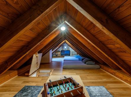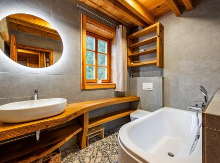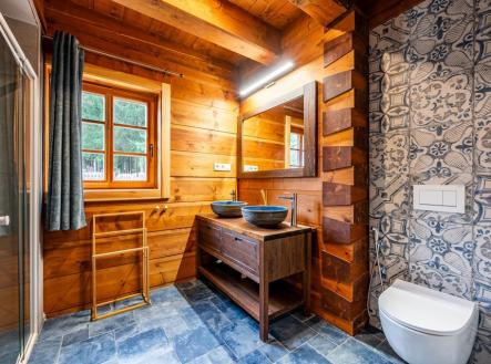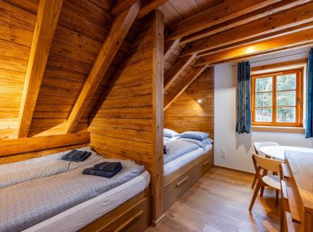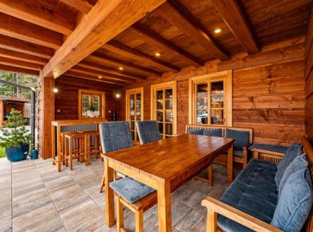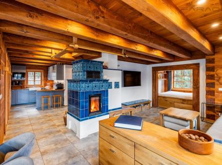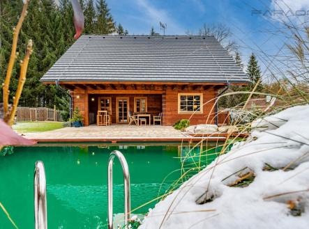 Prodej kompletně zařízené stylové roubenky 6+1 (194 m2), která je momentálně úspěšně pronajímána na krátkodobé pobyty s velmi vysokým výnosem, vítěz AMAZING PLACES v kategorii roubenky a v kategorii design a architektura 2024. Skvělá investiční příležitost, možnost přenechání kompletního fungujícího podnikání se zavedenou klientelou včetně značky Roubenka Kamennka a budoucích zarezervovaných pobytů. Roubenka je umístěná na velmi klidném a kouzelném místě přímo u lesa v obci Kamenná Lhota u Borotína v okrese Tábor na pozemku (1001 m2) s dokonalým koupacím jezírkem se slanou vodou, novou finskou saunou s odpočívárnou, vířivkou a dvěma terasami. Díky naprosto precizní výstavbě se smyslem pro detail, vzniklo dokonalé místo pro rekreaci na klidném místě obklopeném lesy. Lze ji samozřejmě využít i pro celoroční bydlení. Okolí roubenky vybízí k aktivnímu sportování, ať už díky přilehlým turistickým trasám, cyklotrasám, či skiareálu a bike parku Monínec. Dispozice chalupy zahrnuje tři podlaží a obytnou půdu. 1. PP (38 m2) - garáž, technická místnost, toaleta, 1 . NP (91 m2) - zádveří, toaleta, koupelna, spíž, chodba, kuchyně, obývací pokoj s jídelním koutem a výklenkem, terasa, balkon, 2. NP (65 m2) - chodba, čtyři ložnice, dvě koupelny s toaletou, půda - otevřený prostor obytné pochozí půdy. Kompletní nadstandardní vybavení (viz. fotodokumentace) je součástí prodejní ceny. Samostatně stojící chalupa s dřevěným plotem má obdélníkový tvar o rozměrech 8,6 m x 9,9 m s přístavbou na severní straně o rozměrech 8,4 m x 2,2 m. Na výstavbu roubené chalupy byly použity strojně opracované masivní profily ze smrkového dřeva, které dodávají stavbě přírodní a ekologický vzhled. Přístup k pozemku je zajištěn ze stávající obecní komunikace, pozemek je kompletně oplocen dřevěným plotem. Dřevěná okna s izolačním dvojsklem, podlahy jsou v 1. PP a v 1. NP řešeny dlažbou, ve 2. NP a na půdě je položena dřevěná plovoucí podlaha. Vytápění je v 1. NP a 2. NP zajištěno elektrickým podlahovým vytápěním a krbem kachlových kamen se dvěma topeništi na tuhá paliva, v 1. PP jsou dva radiátory. Ohřev vody zajišťuje dvoukomorový bojler o objemu 140 litrů. Přilehlá terasa je zastřešená s venkovní kuchyní a pohodlným posezením. Druhá terasa se zastřešeným plynovým grilem a ohništěm s dřevěnými špalky na sezení je situována vedle vstupní brány. Místo je velmi klidné, přímo sousedící s lesem a láká nejen krásnou okolní krajinou, ale také s možností využití klidné relaxace v kombinaci s aktivním odpočinkem, turisticky zajímavém okolí. V zimě je možné využívat ski areál Monínec.