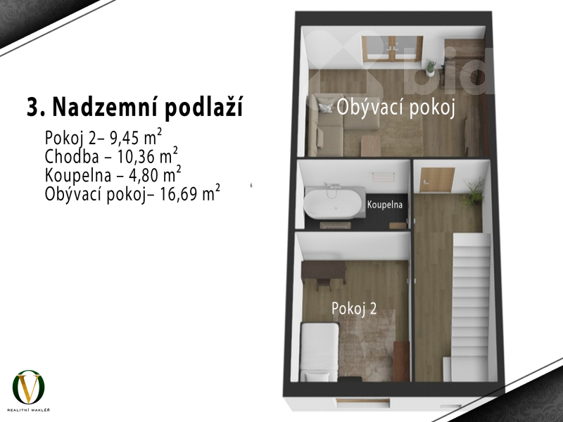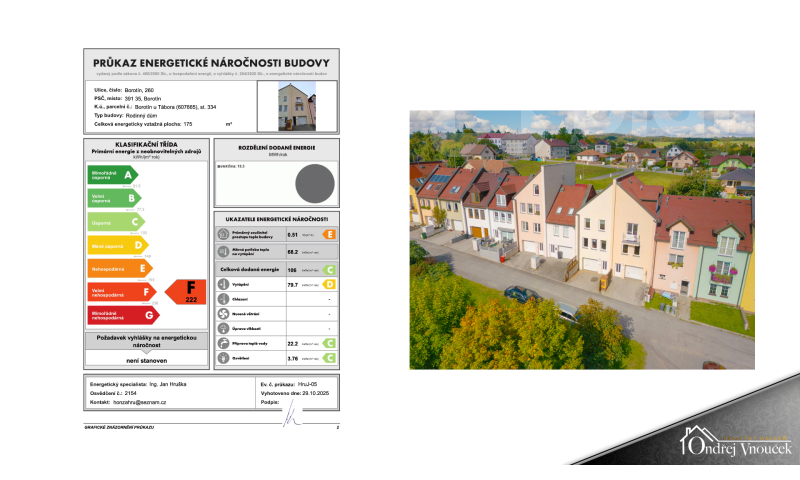 Hledáte něco, co má soukromí domu, ale zároveň je to koncepčně blíž bytu bez velké zahrady a s minimální údržbou? Tady to přesně sedí Nabízím k pro deji moderně řešenou jednotku o dispozici 5+1 ve třech podlažích s obytným podkrovím, která působí jako řadový dům, ale díky zasazení v rámci většího rezidenčního komplexu ji spousta lidí bude vnímat spíš jako pohodlný byt na výšku Vedle jsou obdobné "domy", z jedné strany navazují další jednotky, z druhé strany jsou bytové domy, takže bydlení má komunitní charakter a praktický režim bez velké zahrady Součástí je garáž a zpevněná plocha před domem, kterou využijete na parkování nebo příjemné posezení Terasa je menší, takže ideální pro někoho, kdo chce venkovní prostor, ale nechce se starat o klasickou zahradu Dispozice 1. NP vstup, garáž, komora, sklad 2. NP světlý pokoj, kuchyně s jídelnou, WC, chodba 3. NP dvě ložnice, koupelna s WC po rekonstrukci, balkon Podkroví další dva pokoje, chodba, komora Technické informace Napojení na veřejný vodovod i kanalizaci Vytápění elektrické přímotopy Lokalita Borotín je klidná obec v severní části okresu Tábor, v okolí příroda, rybníky, cyklotrasy i turistické trasy Do Tábora jste zhruba za 15 minut, do Prahy přibližně za hodinu V obci najdete obchod, školu, školku i poštu a navíc příjemné historické jádro se zříceninou hradu Borotín Chcete bydlení, které je praktické jako byt, ale máte vlastní vstup, více podlaží a garáž jako u domu? Napište mi a domluvíme prohlídku, kdy se vám to hodí?.
