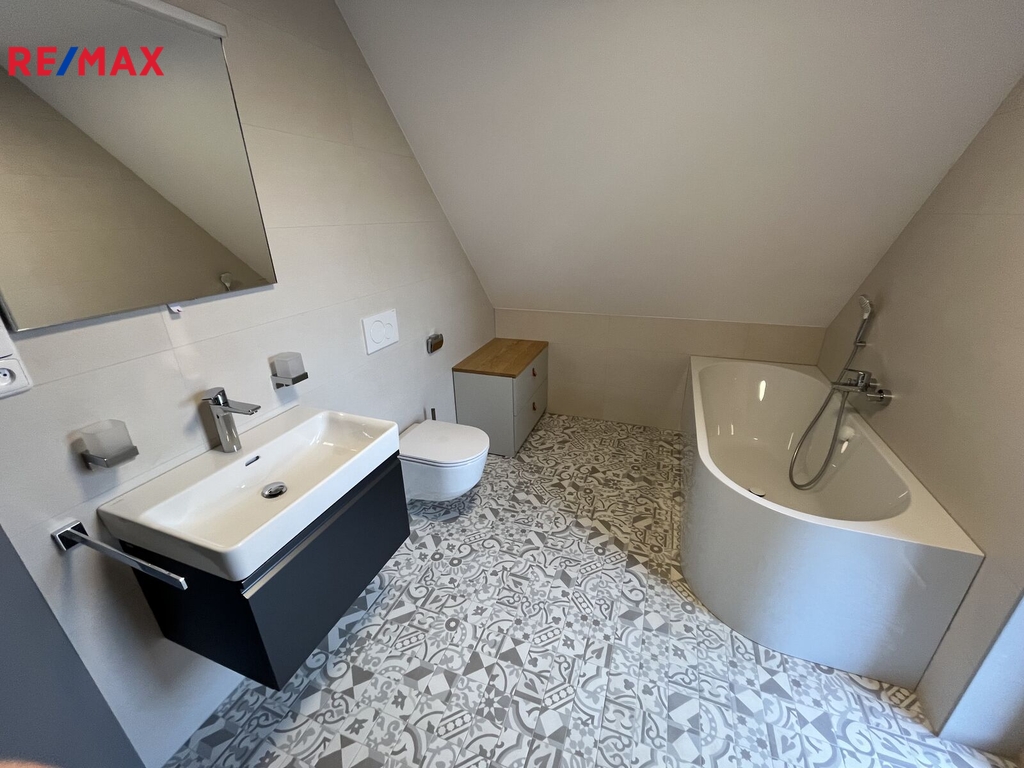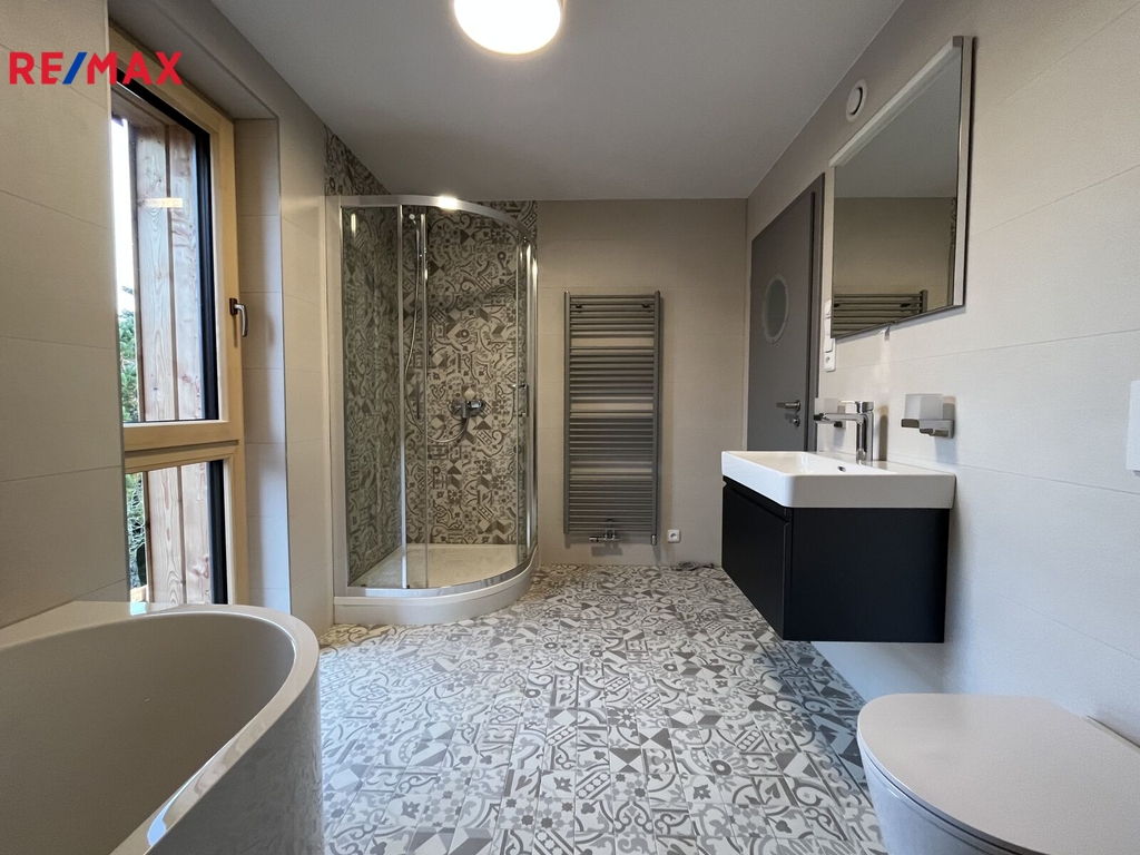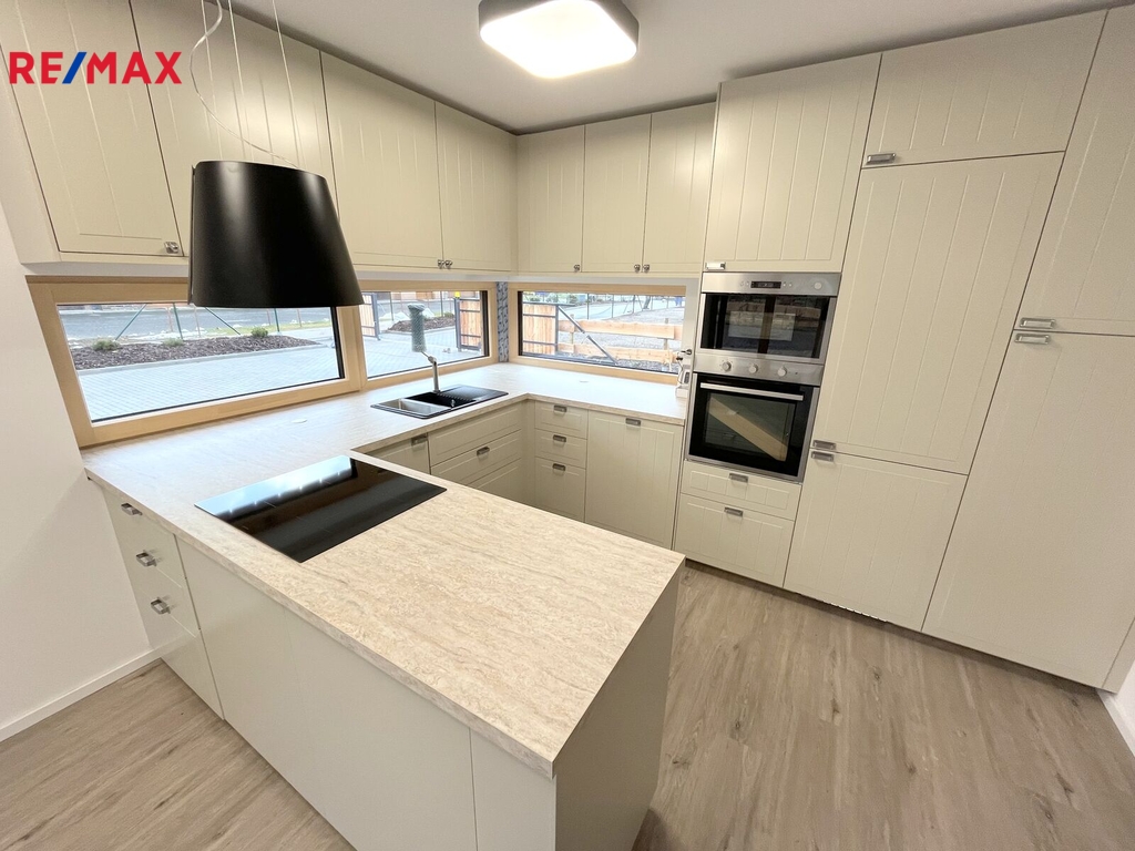 Nabízíme k pronájmu moderní novostavbu rodinného domu s prostornou zahradou v klidné oblasti obce Borová Lada, okres Prachatice, v srdci Šumavy. Tento energeticky úsporný dům dosahuje A třídy energetické náročnosti díky využití tepelného čerpadla vzduch-voda a rekuperace. Topení teplovzdušné se zpětným získáváním tepla. Dům s dispozicemi 5+kk nabízí dvě nadzemní podlaží. V 1. NP. se nachází společný prostor obývacího pokoje s kuchyní na míru a možností umístění jídelního stolu s výhledem do zahradní části a na navazující dřevěnou terasu na kterou je vstup z obývacího pokoje, kde jsou dominantou krbová kamna. Terasa má lamelově elektricky ovládanou střechu s možností náklonu na svit sluníčka. Boční a čelní strany terasy lze také spuštěním venkovních rolovacích lamel uzavřít. Dále se v přízemí nachází jeden samostatný pokoj též s východem na terasu, koupelnu se sprchovým koutem, WC a umyvadlem. Dlažba a obklad koupelny je moderní a nadčasový. Technické zázemí domu (tepelné čerpadlo, akumulační nádrž a vývod a přívod na připojení pračky). Vnitřní dřevěné schody nás zavedou do 2. NP., kde se nachází tři samostatné pokoje, šatna, koupelna s vanou, sprchou a toaletou. Dům napojen na vodovodní a kanalizační řád obce. Kompletně oplocený pozemek s nově založeným trávníkem a upravenou zahradou umožňuje samostatný vjezd a parkování přímo u domu či v zastřešeném přístřešku, za kterým je vyhotoven ještě sklad na náčiní. Po domě rozvedený alarm a připojení k Wi-Fi. Zahrada nabízí prostor k posezení v létě ke grilování a odpočinku. Zastavěná plocha 128 m2. Celková plocha pozemku cca 910 m2. Klidné prostředí šumavské krajiny. Dům je ideální pro rodinu či možné využití jako trvalé bydlení s podnikáním, kde můžete mít sídlo své firmy nebo využívat pouze k rekreačním účelům v každém ročním období. Tato moderní nemovitost kombinuje komfortní bydlení s ohledem na životní prostředí a nabízí ideální domov pro náročné nájemníky. V případě zájmu o prohlídku nás neváhejte kontaktovat. Měsíční nájemné 45.000,- Kč (voda a elektřina zálohy 5.000,-Kč), vratná kauce 45.000,-Kč, provize RK 30.000,-Kč. V případě zájmu o prohlídku nás neváhejte kontaktovat.