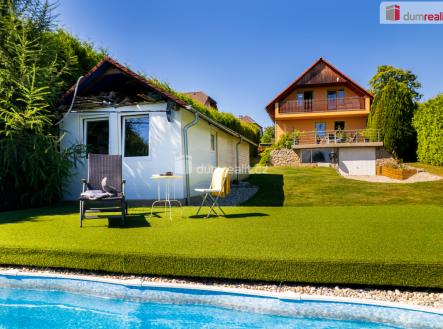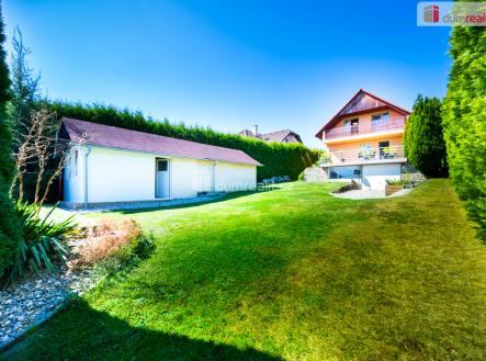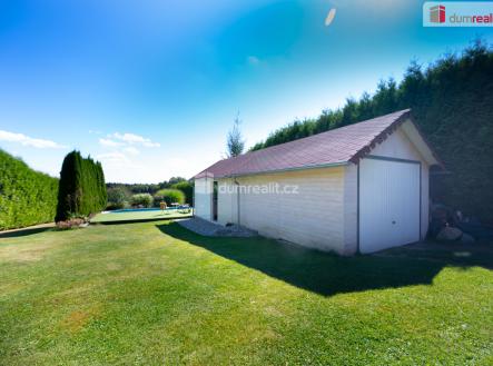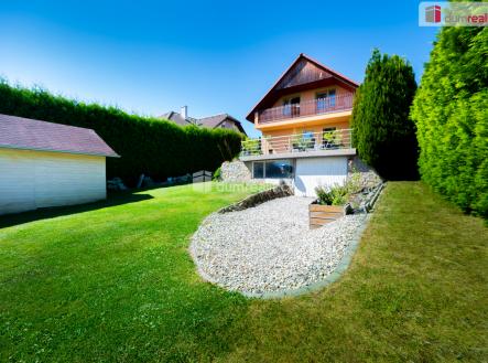 K prodeji, zateplený rodinný dům 5+1 s terasou, balkonem, garážemi, letní kuchyní se saunou, jezírke