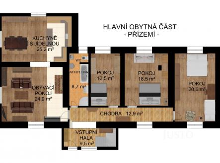 V zastoupení majitele nabízíme ke koupi jedinečnou nemovitost s velkým potenciálem, situovanou v srdci malebné jihočeské vesnice Boudy, nedaleko Mirotic (okres Písek). Tato lokalita se právem řadí mezi vyhledávané – nejen pro svou klidnou atmosféru a krásnou přírodu, ale i pro svou výbornou dostupnost a občanskou vybavenost, která v posledních letech prochází dynamickým rozvojem. V Miroticích najdete kvalitní základní školu, kavárnu, řemeslnou pekárnu, zdravotní středisko i další služby, které výrazně zpříjemňují každodenní život. Necelých pět minut od domu se napojíte na nově dokončenou dálnici D4 – do Prahy se tak dostanete za méně než 50 minut, do Písku do 15 minut. Lokalita tak výborně kombinuje klid venkova s pohodlím rychlé dostupnosti větších měst. Popis nemovitosti: Tento prostorný vícegenerační dům prošel rozsáhlou a citlivou rekonstrukcí a je aktuálně rozdělen na dvě samostatná křídla, čímž nabízí možnost komfortního bydlení pro více rodin, kombinaci vlastního bydlení s pronájmem, případně i komerční využití. Dispozice: Západní křídlo (užíváno majiteli): Přízemí: byt 4+1 (114,5 m²) Podkroví: byt 2+kk (70 m²) Sklepní prostor: 16 m² Východní křídlo (možnost pronájmu): Byt 3+kk se dvěma koupelnami (62 m²) Mezonetové studio 1+1 (39 m²)- nyní je pronajato Celý objekt je napojen na veřejnou kanalizaci, vodovod i plynovod. Vytápění je řešeno plynovým ústředním topením s možností kombinace s vestavěnou krbovou vložkou, která zajišťuje nejen příjemnou atmosféru, ale i efektivní provoz v zimních měsících. Výnos z nájemního bydlení pokrývá většinu nákladů na provoz domu. Pozemek a okolí: Pozemek o rozloze 6 871 m² se rozkládá na mírně svažitém terénu a je z více než 60 % přístupný z veřejné komunikace – což dává značný prostor pro budoucí rozvoj, rozšíření nebo komerční využití. Okolní smíšená výsadba užitkových i okrasných dřevin poskytuje nejen estetickou hodnotu, ale i praktické využití – ideální pro milovníky přírody a zahradničení. Možnosti využití: Díky svému rozložení, dispozici a výhodné poloze má nemovitost široké možnosti využití – od komfortního rodinného bydlení, přes pronájem, až po provozování penzionu nebo rekreačního ubytování pro cykloturisty, kterým zdejší okolí nabízí ideální podmínky pro toulky krásnou jihočeskou krajinou. Shrnutí: vícegenerační rodinný dům po rekonstrukci klidná a malebná lokalita s perfektní dostupností 4 samostatné bytové jednotky pozemek 6 871 m² s možností dalšího rozvoje kompletní napojení na inženýrské sítě vysoký investiční potenciál Ve fotogalerii naleznete kompletní 2D a 3D půdorysy s výměrami jednotlivých místností.