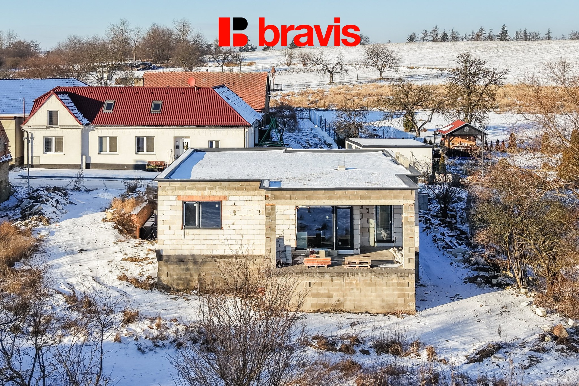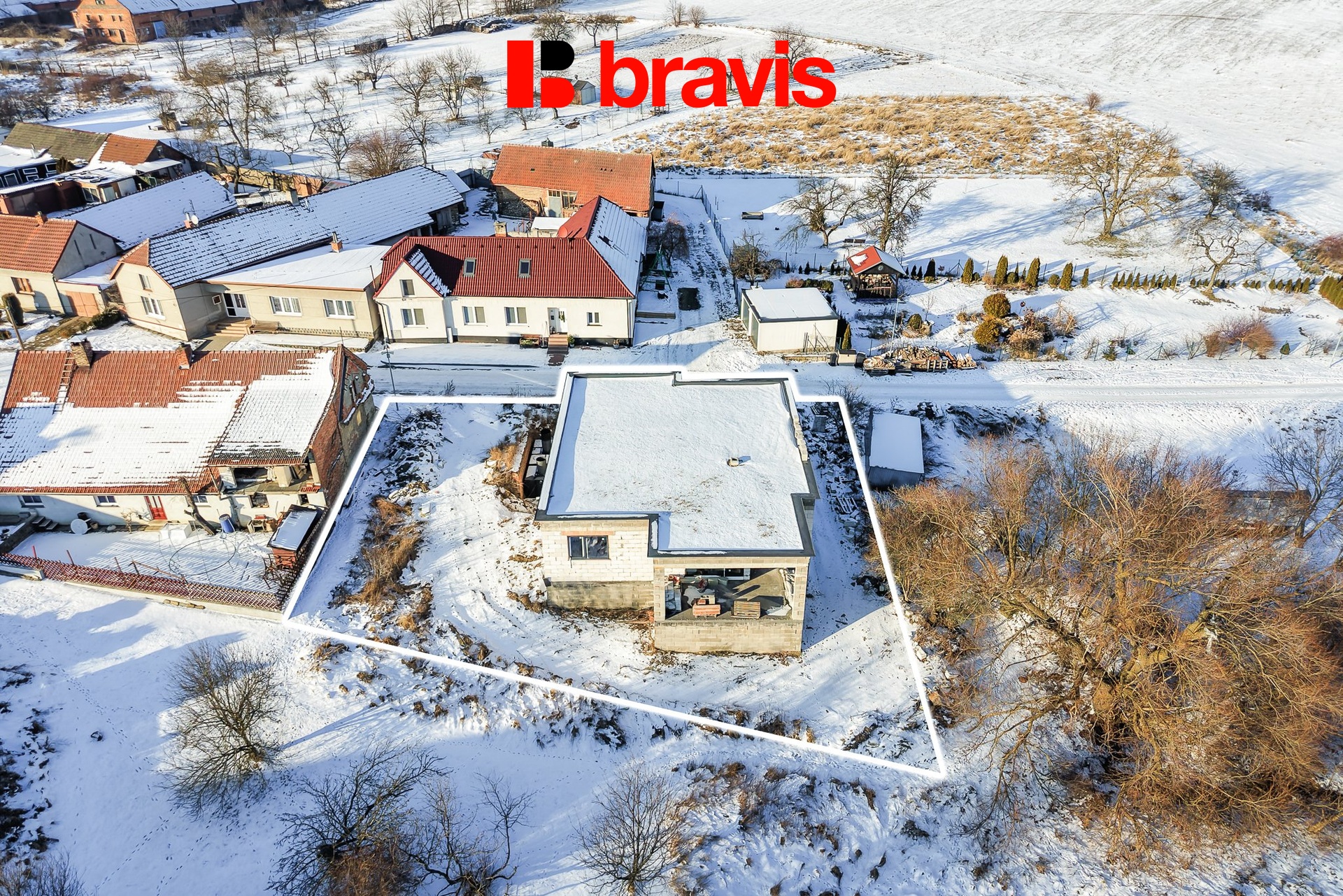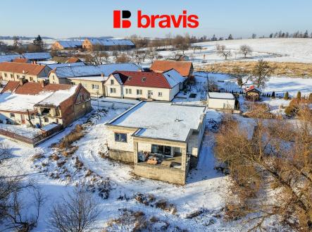 Prodej nedostavěného bungalovu 5+kk s dvojgaráží a terasou, pozemek 551 m² – Bousín, okres Prostějov