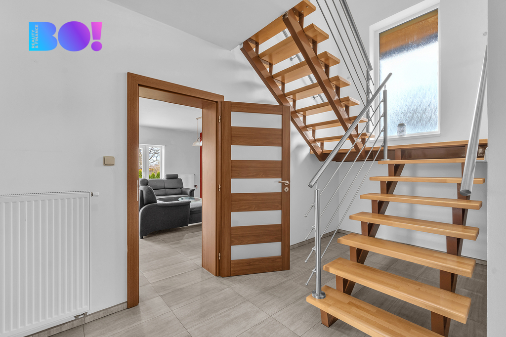 Moderní novostavba z roku 2017, umístěná v krásné a klidné lokalitě na okraji obce Bousov, Ronov nad Doubravou - 3km, Třemošnice 10 km, okres Chrudim. Dům je obklopen přírodou, přesto se nachází jen pár minut od centra obce. Ideální volba pro ty, kteří touží po klidném bydlení v harmonii s přírodou, aniž by se museli vzdát pohodlí městského života. Dispozice a technické řešení: Dům nabízí dispozici 4+kk s užitnou plochou 146 m², rozloženou do dvou podlaží. • Přízemí: zádveří, vstupní hala, prostorný obývací pokoj s jídelnou a krbem spojenou kuchyní, technická místnost, koupelna, WC. • Patro: ložnice s šatnou a vstupem na balkon, 2x dětský pokoj, WC. Na rodinný dům navazuje terasa pro grilování a odpočinek, zahrada o ploše 1125 m² s bazénem. Provozní náklady jsou: • Elektřina: 2500 Kč/měs. • Voda: 500 Kč/měs. Tento dům představuje dokonalé spojení moderního a úsporného bydlení s přírodou a klidem, a přitom na dosah veškeré infrastruktury měst Ronova nad Doubravou a Třemošnice v okrese Chrudim