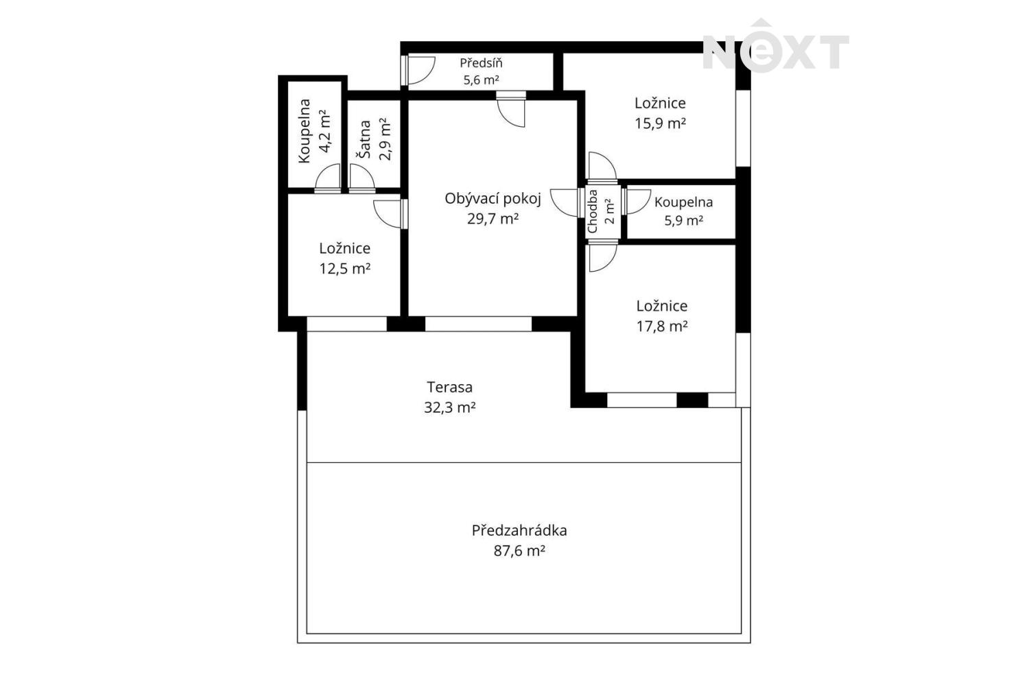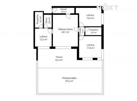 Exkluzivně nabízíme k prodeji zcela nový byt o dispozici 4+kk a celkové užitné ploše 222 m², kterou tvoří samotný byt (102 m²), terasa (32,3 m²) a předzahrádka (87,6 m²). Nachází se v přízemí domu Marie v prestižním projektu Rezidence Na Mariánské cestě, oceněném titulem Realitní projekt roku 2023. Byt byl v rámci výstavby rozšířen o klientské změny a nadstandardní prvky v hodnotě cca 500 000 Kč, které jsou již součástí kupní ceny. K bytu je možné dokoupit dvě garážová stání a dva sklepy jako samostatné příslušenství. Vítejte v Rezidenci Na Mariánské cestě – místě, kde se moderní severská architektura snoubí s přírodou a chytrými technologiemi. Tento byt není jen o prostoru a výbavě – je to domov, kde se budete cítit dobře od prvního okamžiku. Velká hliníková okna s elektrickými venkovními žaluziemi propojují světlý obytný prostor s terasou a zahradou, ze tří pokojů lze vycházet přímo ven. Můžete zde relaxovat pod zastřešenou pergolou na terase nebo na zahrádce, která je nadstandardně veliká. Dispozice je navržena s důrazem na komfort a praktické užívání. Obývací pokoj plynule navazuje na kuchyňskou část, tři samostatné ložnice zajišťují soukromí všem členům domácnosti. K dispozici jsou dvě koupelny – jedna s vanou, druhá se sprchovým koutem – dále šatna a prostorné chodby. Dispoziční plánek je součástí fotodokumentace. Každý detail interiéru vznikal s ohledem na kvalitu a nadčasový design. Londýnské studio Identity Designers navrhlo styl s prémiovými materiály, dřevěnými podlahami, elegantními dveřmi a kvalitní sanitou. Na vyžádání je k dispozici klientský list materiálů a návrh budoucího vybavení interiéru, terasy a zahrady. V bytě jsou použity technologické prvky pro vysoký komfort a dlouhodobou hodnotu. Vytápění i ohřev vody zajišťuje tepelné čerpadlo země–voda a fotovoltaika, díky čemuž má budova energetickou třídu A a mimořádně nízké provozní náklady. Rezidence je promyšlená do posledního detailu – téměř tři čtvrtiny plochy tvoří zeleň, relaxační zóny, jezírka a parkové úpravy, které navrhli přední krajinářští architekti. Najdete tu saunu, Kneippův chodník, workout hřiště, dětský park, komunitní zahrádku, sdílené ohniště i grill point – prostor, kde můžete odpočívat, sportovat a potkávat se s přáteli i sousedy. Projekt Na Mariánské cestě patří mezi nejkvalitnější rezidenční stavby v ČR. Moderní architektura, špičkové provedení a důraz na detail vytvářejí prostředí, které si drží nadčasovost, styl i hodnotu. Byt vyniká svou polohou – nabízí klid, soukromí i přímý kontakt se zelení, a přitom je jen několik minut od centra Brandýsa. Brandýs nad Labem patří k nejvyhledávanějším lokalitám Prahy-východ – má historické centrum s kavárnami a obchody, kompletní občanskou vybavenost a výbornou dopravní dostupnost. Pokud vás tento výjimečný byt zaujal, ráda vám poskytnu další informace nebo domluvím osobní prohlídku. Pro komunikaci uvádějte evidenční číslo zakázky N115500.