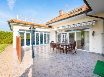 Prodej rodinné vily s bazénem, letní terasou, velkou zahradou a soukromým sportovištěm v Brandýse