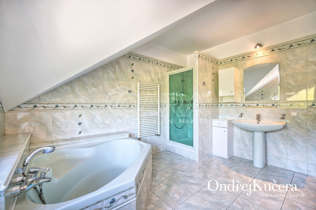 Propojení prostoru, soukromí a potenciálu do budoucna Vám nabízím v rodinné vile s dispozicí 7+1 na výjimečně velkém pozemku 1.865 m² v klidné a atraktivní lokalitě Brandýsa nad Labem, v ulici Na Dolence č.p. 1922. Tento cihlový dům s podlahovou plochou 435 m² byl postaven z kvalitních materiálů v roce 2002 jako promyšlené rodinné sídlo, kde je dostatek místa pro každého člena rodiny i hosty. Prakticky řešené propojení vnitřních i venkovních prostor nabízí naprosté soukromí i dokonalé zázemí pro setkávání, ať už v obývacím pokoji u rodinného krbu, v kuchyni s jídelnou a zimní zahradou, nebo na slunné terase s markýzou, která navazuje na krytý bazén. Přehled hlavních předností: - Velkorysá dispozice 7+1, dvojgaráž, slunná terasa, zimní zahrada, krytý bazén, 85 m² střešní terasa s výhledem a mnoho dalšího. - Vlastní sportovní hřiště a rovný pozemek. - Zahrada se vzrostlými dřevinami poskytuje naprosté soukromí, automatická závlaha, zahradní domek, ovocné stromy. - Chytré členění: klidová zóna s ložnicemi, pracovnou, pokojem pro hosty či fitness je umístěna v patře. Hlavní ložnice má vlastní šatnu, koupelnu a balkon. - Vytápění je zajištěno podlahovým topením přes plynový kotel, centrální vysavač pro maximální komfort. - Všechny inženýrské sítě: elektřina, plyn, obecní vodovod i kanalizace. - Výborná dostupnost: pěšky 8 minut na vlak a bus, autem 15 minut na pražský Černý Most. Dům je v dobře udržovaném stavu, připravený na nové majitele, kteří ho mohou posunout na další úroveň – například instalací tepelného čerpadla či solárních panelů. Díky střešní terase a velké ploše je zde potenciál pro chytrou modernizaci i další přestavbu – můžete rozdělit vilu až na tři bytové jednotky, nebo přetvořit bazénovou část na unikátní loftový byt s vlastním zázemím. Energetický štítek se zpracovává, takže v inzerci není uvedena správná hodnota. Předpoklad je klasifikační třída C - úsporná. Proč právě tento dům? Taková zastavěnost parcely s užitnou plochou domu v Brandýse nad Labem už dnes prakticky není dostupná. Koupí této nemovitosti si zajišťujete nejen pohodlí a prostor, ale i hodnotu do budoucna. Tato vila po prvním majiteli je připravena napsat další kapitolu spokojeného rodinného života. Ozvěte se a rád Vás osobně provedu celým domem i zahradou. Ondřej Kučera osobní realitní makléř