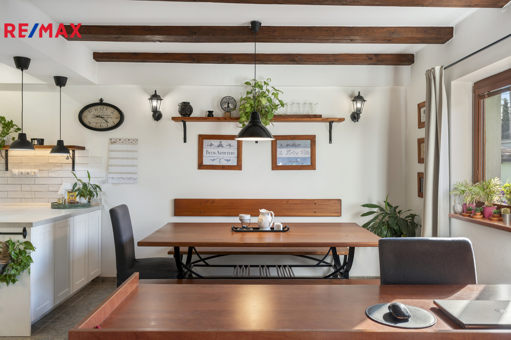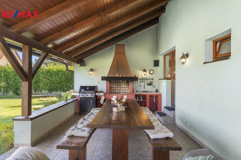 Nabízím vám rodinný dům 5+kk s pozemkem o velikosti 945 m², který vás překvapí svou příjemnou atmosférou, promyšleným dispozičním řešením a velkorysým zázemím. Dům prošel kompletní rekonstrukcí přibližně před 18 lety. Podlahová plocha domu činí 140 m², užitná 128 m². Interiér působí mimořádně útulně, a to i díky množství dřevěných masivních prvků, které prostoru dodává harmonii a teplo domova. Dispozice i členění prostoru umožňuje v případě potřeby rozdělení na dvougenerační bydlení. Součástí domu je velká terasa s krbem. Na zahradě najdete samostatnou vedlejší stavbu – s místností vhodnou pro cvičení jógy, posilování nebo práci z domova, krásnou saunu, samostatnou toaletu, kolárnu a přístřešek na dřevo, garáž s velkým pracovním prostorem a pohodlné parkování přímo na pozemku. Celková užitná plocha domu a vedlejších zmíněných staveb je přes 200 m2. Celý venkovní prostor je upravený, plně zařízený a působí mimořádně příjemně. K dispozici jsou veškeré inženýrské sítě – obecní i studniční voda, elektřina, spádová kanalizace a plyn. Vytápění zajišťuje nový plynový kotel pořízený v roce 2024, v přízemí je podlahové topení, v patře radiátory. Plyn slouží také pro vaření. Velkým plusem je nová kuchyňská linka včetně rozvodů zhotovena před třemi lety. Dřevěná okna, balkón o velikosti 2 × 3 m a sklep uvnitř domu jsou další z praktických detailů, které potěší. Provozní náklady pro čtyřčlennou domácnost (plyn, elektřina, voda, internet) se pohybují kolem 9–10 000 Kč měsíčně. Dvojměstí Brandýs nad Labem - Stará Boleslav se umisťuje dlouhodobě na předních příčkách v indexu kvality života ve městech. Má veškerou občanskou vybavenost na nejvyšší úrovni. Dům má zároveň velmi dobrou strategickou polohu, ať už budete potřebovat do Prahy nebo na druhou stranu do hor, nájezd na dálnici je pouhých pár minut od domu. Lokalita Staré Boleslavi je vyhledávaná díky své historii, atmosféře, blízkosti přírody a zmíněné velmi dobré dostupnosti do Prahy. Prohlídky se budou konat po předchozí telefonické či e-mailové dohodě. Dovolujeme si upozornit, že v případě více vážných zájemců může být nemovitost prodána nejlepší nabídce.