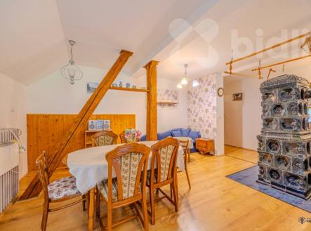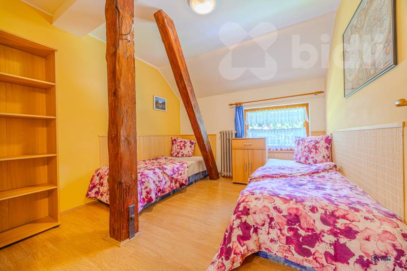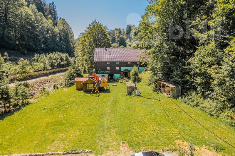 Exkluzivně Vám nabízím k prodeji penzion s tradicí a atraktivní polohou přímo pod hradem Kolštejn v obci Branná. Nemovitost se nachází jen pár minut od vlakového nádraží a v těsné blízkosti turistických i cyklistických tras. Díky tomu je ideálním místem pro celoroční rekreaci i podnikání. V případě investice předpokládaná návratnost 8% ročně. Celková užitná plocha nemovitosti činí 513 m2 s pozemkem 1681m2. V současnosti jsou k dispozici tři plně vybavené apartmány o dispozici 4+kk s kapacitou 18 lůžek, což novému majiteli umožňuje okamžitě apartmány nabízet ke krátkodobým pronájmům. Další dva apartmány lze vybudovat v podkroví a jeden v přízemí, což by novému majiteli značně rozšířilo investiční možnosti. Každý apartmán má vlastní kachlová kamna, další jsou ve společenské místnosti a chodbě. Alternativou pro vytápění je elektrický kotel, ohřev vody zajišťuje bojler, pitná voda je ze studny. Součástí vybavení je potom wellnes zóna obsahující saunu a ochlazovací bazének. V bezprostřední blízkosti najdete lyžařský areál s vlekem, sedačkovou lanovkou a možností nočního lyžování. Další aktivity nabízí lanové centrum, horské minikáry v Ramzové či bobová dráha v Petříkově. Obec Branná je díky své poloze atraktivním cílem turistů po celý rok. Penzion v Branné nabízí široké možnosti využití - od výnosné investice s ubytovací kapacitou až po komfortní rodinné rekreační sídlo. Díky strategické poloze a kvalitnímu zázemí jde o jedinečnou příležitost v srdci Jeseníků. Pro více informací či sjednání prohlídky jsem Vám k dispozici a rádi Vám ve spolupráci s hypotečním specialistou zařídíme výhodné financování na míru. PENB. G.