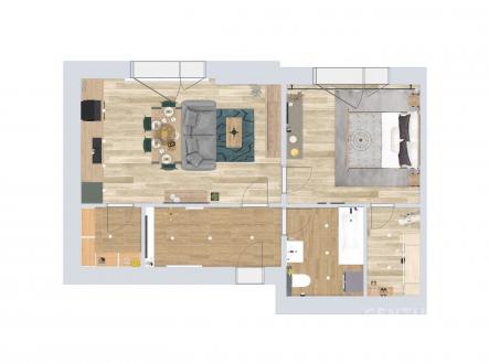 Pronájem nadstandardního bytu 2+kk s šatnou, parkovacím stáním, zahradou a sklepem, 47 m² Bravantic