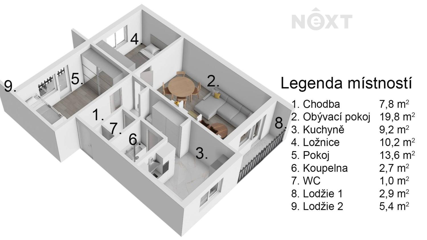 Exkluzivně Vám nabízíme k prodeji byt 3+1 v osobním vlastnictví o přibližné užitné ploše 78,6 m2 vč. sklepní kóje a dvou lodžií nacházející se v žádané části města Břeclav. Byt se nachází ve 2.NP ze 3.NP panelového domu bez výtahu. Byt je velmi udržovaný a po částečné rekonstrukci: rozvody vody a odpadů, částečně i rozvody elektřiny, omítky, dveře, podlahy. K dispozici je chodba (7,8 m2), kuchyně (9,2 m2), obývací pokoj (19,8 m2), dva pokoje (10,2 m2, 13,6 m2), koupelna s vanou (2,7 m2) a samostatné WC (1 m2), dvě lodžie (2,9 m2, 5,4 m2). K bytu navíc náleží sklepní kóje a společné prostory – sušárna. Dům je po částečné revitalizaci – stoupačky, poštovní schránky, plastová okna, zateplení, fasáda, střecha. Vytápění bytu je ústřední, zajištěno vlastním plynovým kotlem umístěným přímo v bytě. Parkování je možné před domem nebo v blízkém okolí. V blízkém okolí je veškerá občanská vybavenost – obchody, škola, školka, lékař, dětská hřiště, parky a mnoho možností pro sportovní a kulturní aktivity. Dle průkazu energetické náročnosti je nemovitost vedena ve třídě D. S financováním nemovitosti Vám velmi rádi pomůžeme. Při osobní prohlídce nejlépe posoudíte, zda je tento byt vhodný právě pro Vaše nové bydlení. Pro více informací nebo sjednání prohlídky kontaktujte realitního makléře. Pro komunikaci uvádějte evidenční číslo zakázky N113579.