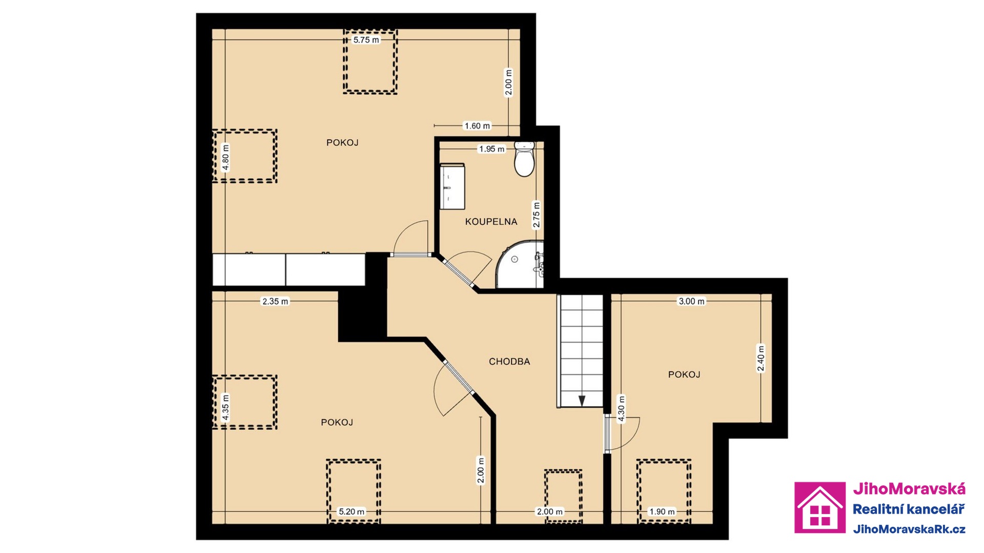 Hledáte ke koupi bytovou jednotku v osobním vlastnictví, k nastěhování bez nutnosti rekonstrukce? Na klidném místě a zároveň se vším potřebným v blízkém okolí? Ve výhradním zastoupení majitelů, Vám zprostředkujeme koupi bytové jednotky o velikosti 4+kk v ulici Hájová č.p. 820, městská část Poštorná, Břeclav. Byt se nachází v 3.nadzemním podlaží a podkroví z celkového počtu 3 podlaží. Celková plocha bytu je 115 m2, s obytnou plochou 104 m2. Dispozice: přízemí: předsíň, koupelna s vanou, chodba, toaleta, pokoj, kuchyň a lodžie podkroví: schodiště, chodba, tři pokoje a koupelna (sprchový kout) s WC.Půdorysy obou podlaží bytu naleznete ve fotogalerii. Aktuální měsíční náklady na provoz bytu pro čtyř člennou domácnost jsou 10.324 Kč (elektřina, teplo, voda, fond oprav a správa bytového domu). V blízkém okolí domu skvělá občanská vybavenost (mateřská škola, základní škola, dětská hřiště, pošta, restaurace a supermarket). Možnost parkování před domem. K předání dohodou. Zaujala Vás tato nabídka? Máte zájem o prohlídku bytu? Vám vyhovující termín prohlídky (datum a čas) s kontakty na Vás (e-mail + tel. číslo) zasílejte formou odpovědi na inzerci.Realitní makléř Vás následně bude telefonicky kontaktovat a domluví se s Vámi na přesném termínu prohlídky bytu.