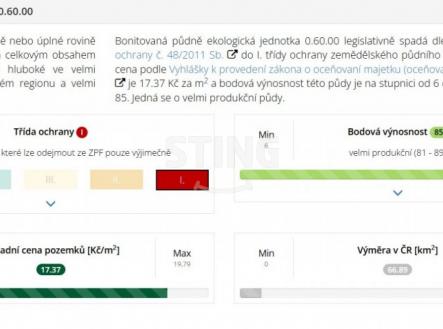 Ve výhradním zastoupení majitele nabízíme ke koupi pozemky (orná půda) o rozloze 10356 m2 v Břeclavi. Z převážné části se jedná o velice bonitní pozemky se stupněm ochrany I zemědělského půdního fondu, kdy na stupnici výnosnosti od od 6 do 100 se vyjadřují hodnotou 85, tedy velmi produkční půdy. Pozemky se nacházejí na níže uvedených parc. číslech, katastrální území Břeclav: - 2934/6 - 2936/3 - 2937 - 3946/4 Koupě těchto pozemků je velice výhodnou investicí v současné době, kdy zemědělské půdy ubývá a její cena má stále stoupající tendenci. Nelze opomenout ani blízkost města Břeclav s ohledem na rozvoj výstavby v budoucnu. Dalším zdrojem zisku z uvedených pozemků pak je i uzavřená pachtovní smlouva s výpovědní lhůtou 3 roky. Do konce prosince 2025 nabízíme prostřednictvím našeho partnera úrokové sazby od 4,29 % p.a. Více informací Vám sdělí náš specialista na prohlídce.