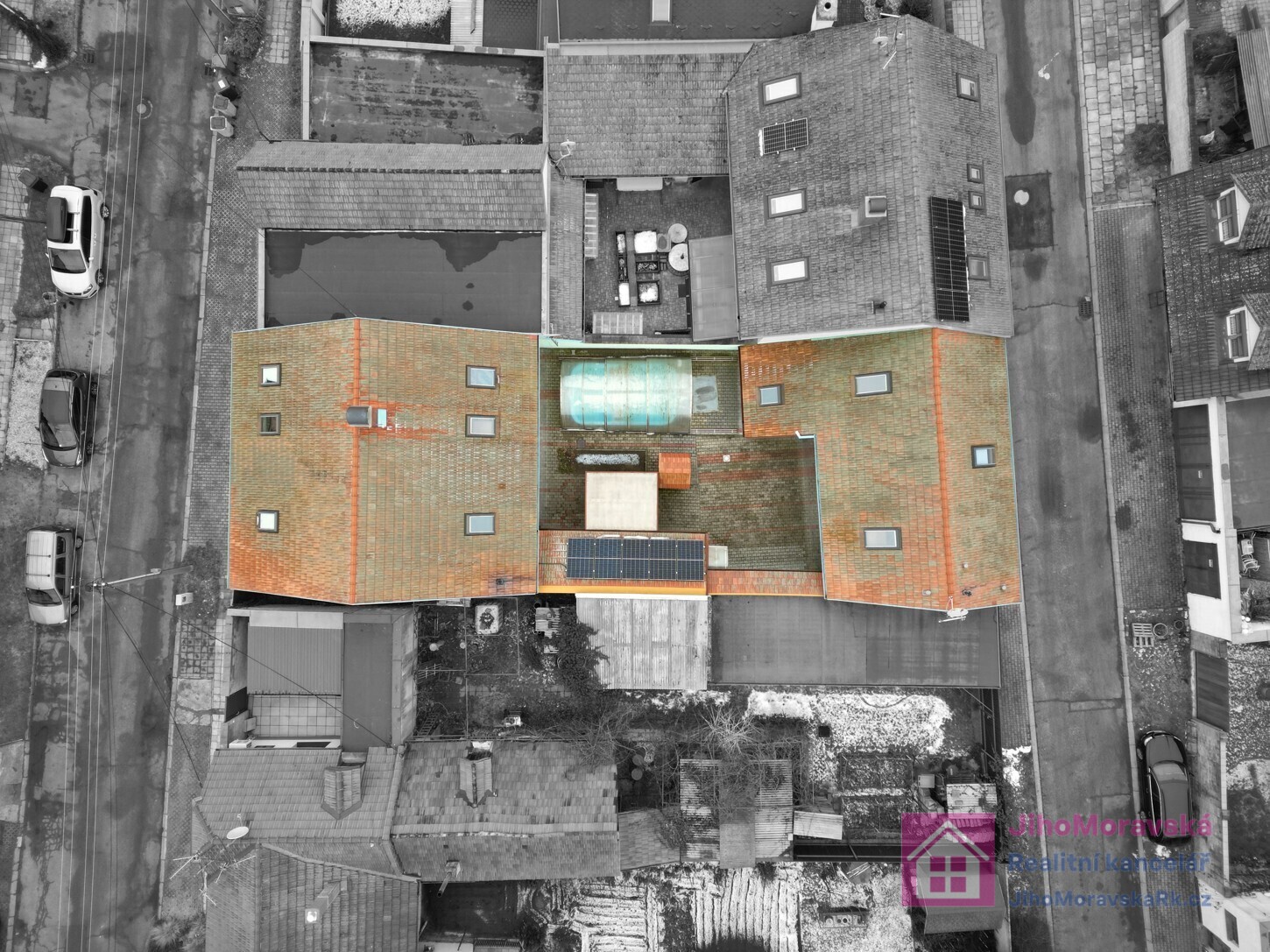 Jestli hledáte dům z katalogu, tenhle přeskočte. Tenhle dům je velký. Hodně velký. Ve výhradním zastoupení majitelů, Vám zprostředkujeme koupi rodinného domu 7+1 s dvougaráží, bazénem, vinným sklepem, který se nachází v ulici J.Fučíka č.p. 117/54, Břeclav – Poštorná. Klidná část Poštorné, minimum ruchu, maximum soukromí. Navrhl si ho stavař pro sebe – promyšleně, poctivě a bez kompromisů. Bez problému zvládne vícegenerační bydlení nebo kombinaci bydlení a podnikání. Interiér je obyvatelný, ale počítejte s modernizací – potenciál je tu obrovský. Dispozice domu: 1. nadzemní podlaží: závětří, chodba, dva samostatné pokoje, toaleta, koupelna (vana a sprchový kout), kuchyně s jídelnou, technická místnost, obývací pokoj (interiérový krb) a schodiště. 2. nadzemní podlaží: schodiště, chodba, samostatný pokoj a tři neprůchozí pokoje s koupelnou (sprchový kout) a WC. Půdorys celého domu naleznete ve fotogalerii. Dispozice garáží: 1. nadzemní podlaží: dvougaráž (průjezdná do dvora) a chodba, pokoj s kuch. koutem a koupelna (sprchový kout) a toaleta. 2. nadzemní podlaží: schodiště, koupelna (rohová vana) s toaletou, kuchyň s jídelnou a dva samostatné pokoje. Půdorys celého domu naleznete ve fotogalerii. Tenhle dům není pro každého. Pokud ale víte, co s prostorem, bude Vám dávat smysl. Měsíční náklady na provoz jsou ve výši = 5.384 Kč (plyn, elektřina, voda / stočné). Dům je napojený na všechny inž. sítě. Ve dvoře najdete krytý bazén a vinný sklípek. Vedle dvougaráže je bytová jednotka 1+kk a v podkroví další bytová jednotka o velikost 2+kk. Do obou bytových jednotek je samostatný přístup z druhé ulice. V případě více vážných zájemců, si prodávající vyhrazuje právo vybrat kupujícího, na základě jím stanovených kritérií. Zaujala Vás tato nabídka? Máte zájem o prohlídku? Vám vyhovující termín prohlídky (datum a čas) s kontakty na Vás (e-mail + tel. číslo) zasílejte formou odpovědi na tuto inzerci. Realitní makléř Vás následně bude telefonicky kontaktovat.