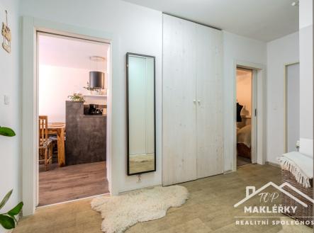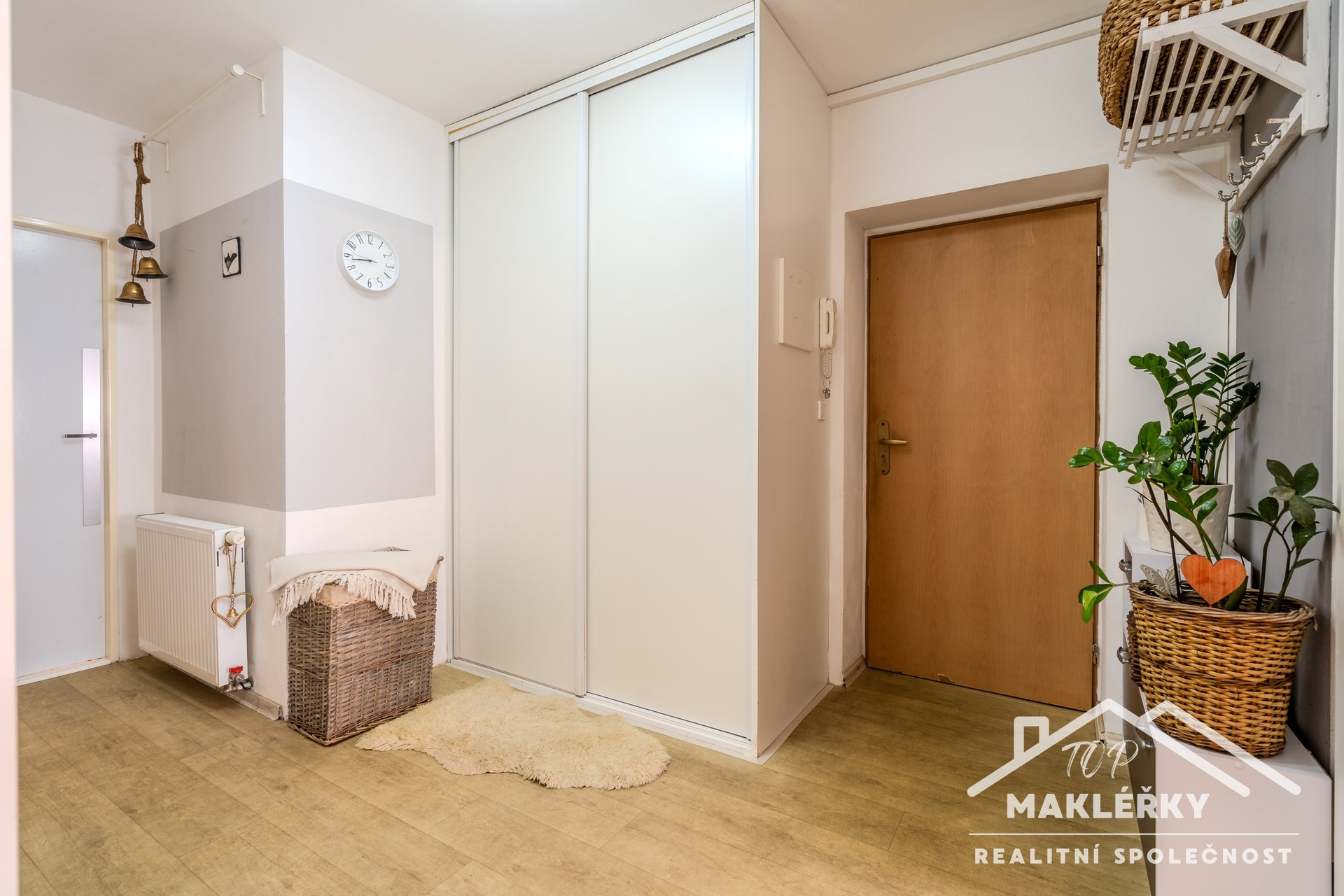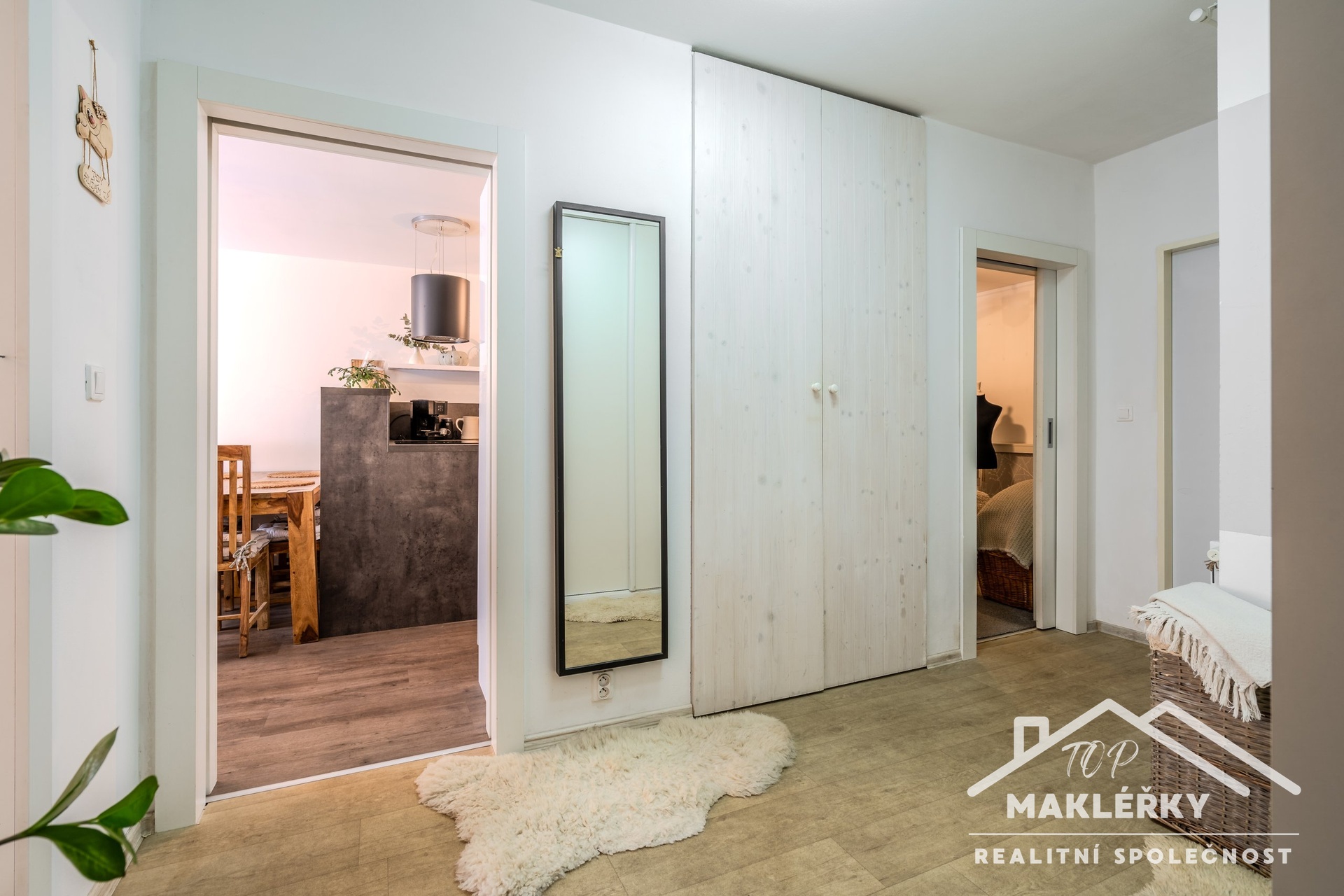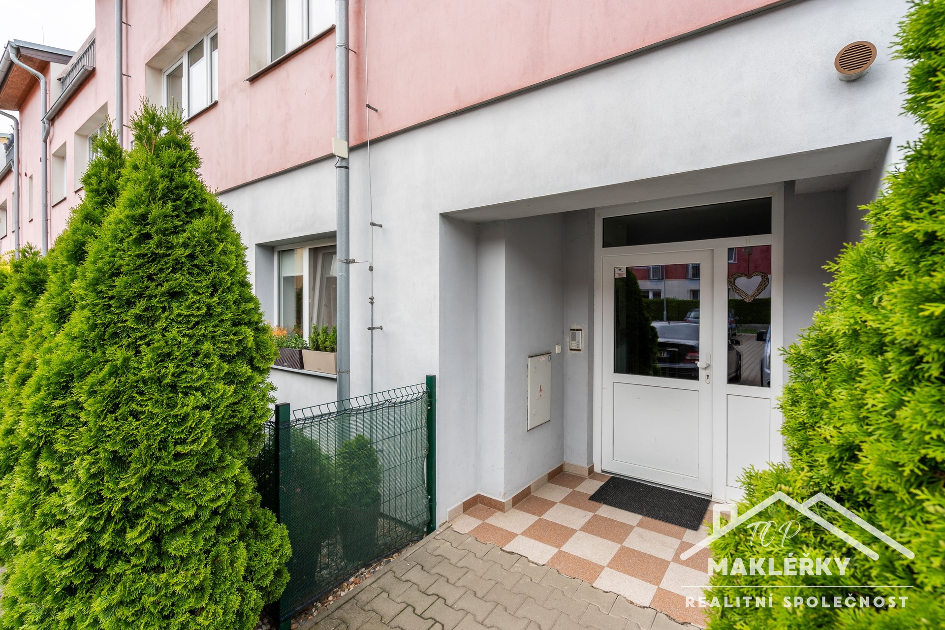 Dovoluji si vám nabídnout velmi pěkný byt o dispozici 2+kk a výměře 55,8 m2 v obci Břežany II. Jednotka je umístěna v přízemí bytového domu. Z centrální chodby je přímý vstup do všech místností. Rovně od vchodových dveří se nachází obývací pokoj a kuchyňský kout se zavěšenou digestoří a veškerými spotřebiči. Zde je nově položená podlahová krytina. Vlevo od vchodu je pak dětský pokoj s vestavnou skříní umístěnou v přední části pokoje. Zadní místnost je využívána jako ložnice. Na konci centrální chodby vpravo se nachází vstup do koupelny s vanou a WC. K jednotce náleží parkovací stání pro jedno vozidlo a koje umístěná v chodbě domu hned vedle bytu. V obývacím pokoji, kuchyni a místnosti na spaní je byt hlukově odizolován. Stejně je pak odizolovaný strop. Vytápění zajišťuje elektrokotel. Voda se ohřívá v bojleru. Nízké náklady na provoz. Dům je dobře vedený s funkčním SVJ. Byt se nachází v uzavřeném komplexu bytových domů se soukromým parkovištěm. Je vhodný jako startovací, případně jako investiční. Majitel si vyhrazuje vybrat zájemce na základě jím stanovených kritérií. Financování koupě této nemovitosti Vám ráda pomůžu zajistit prostřednictvím našeho finančního specialisty.