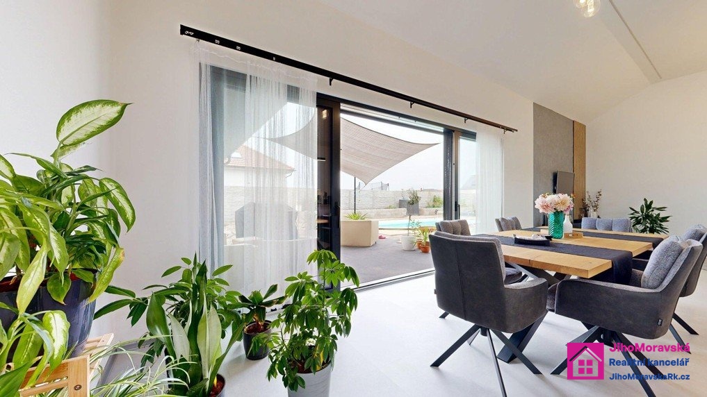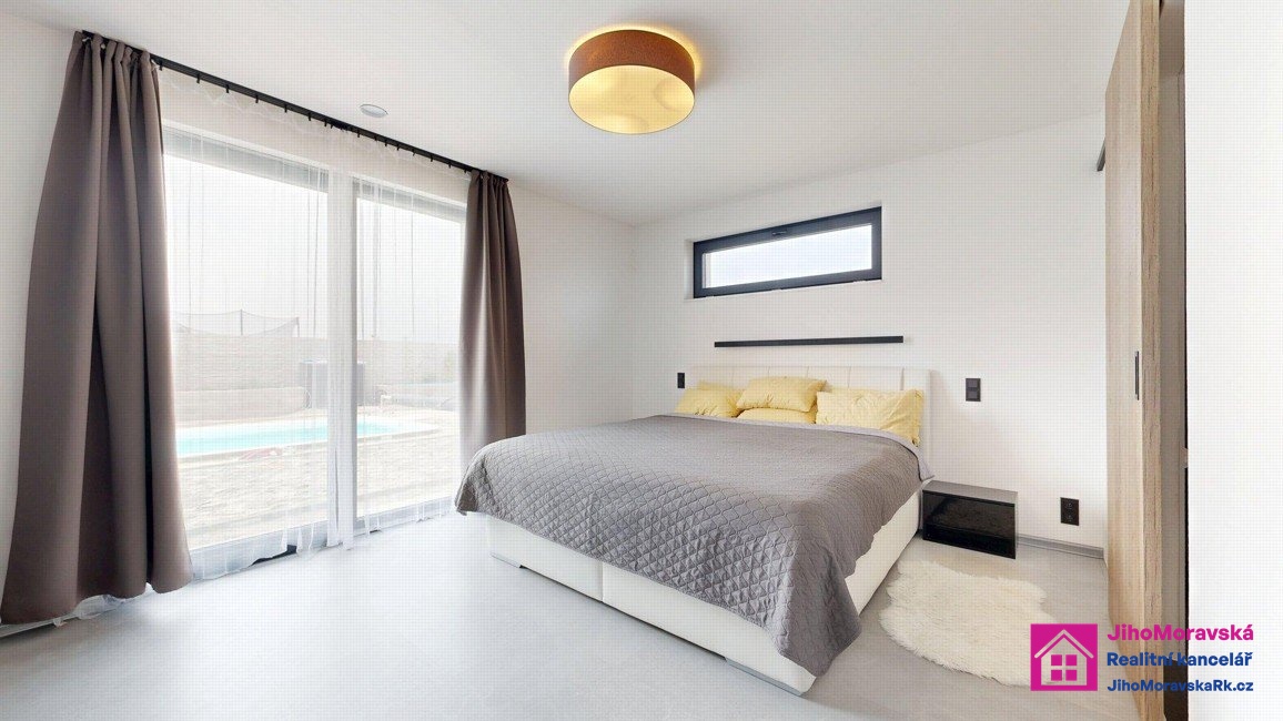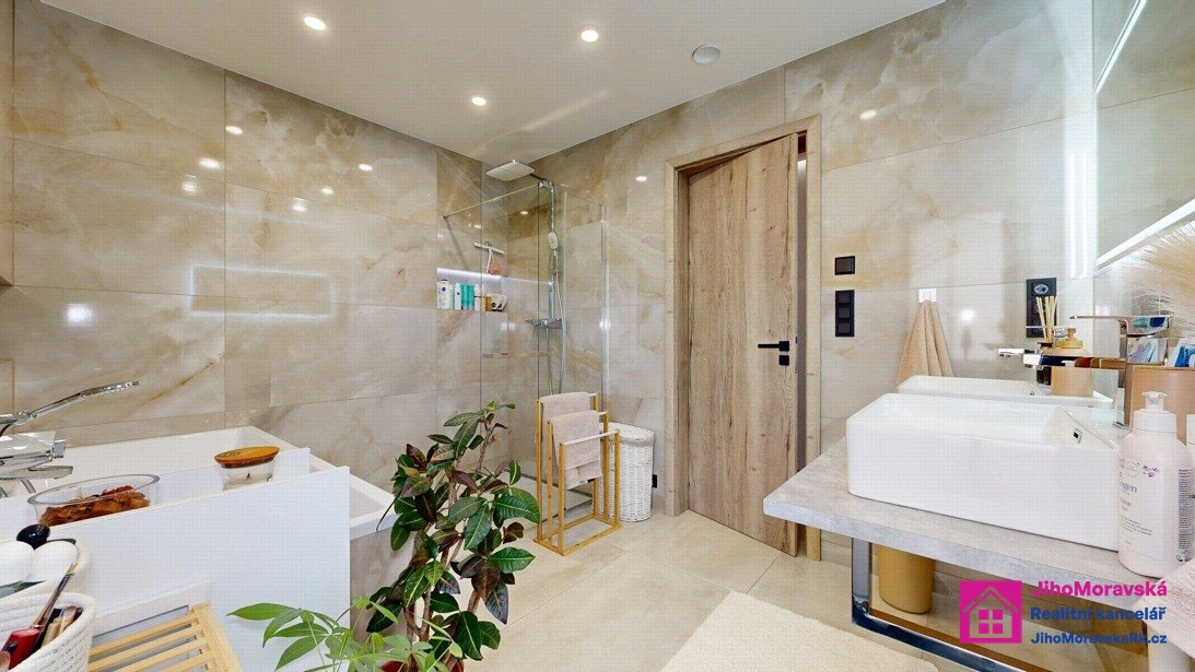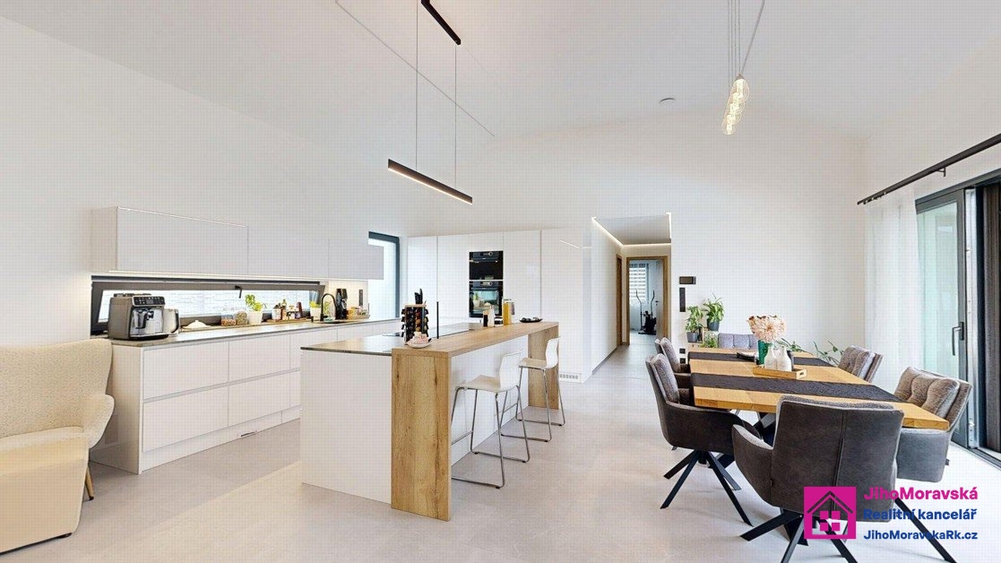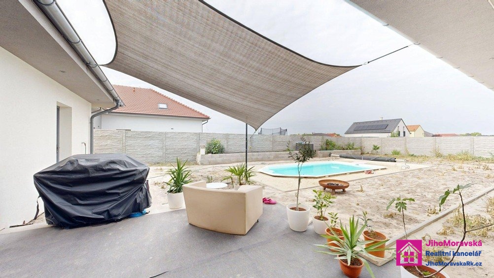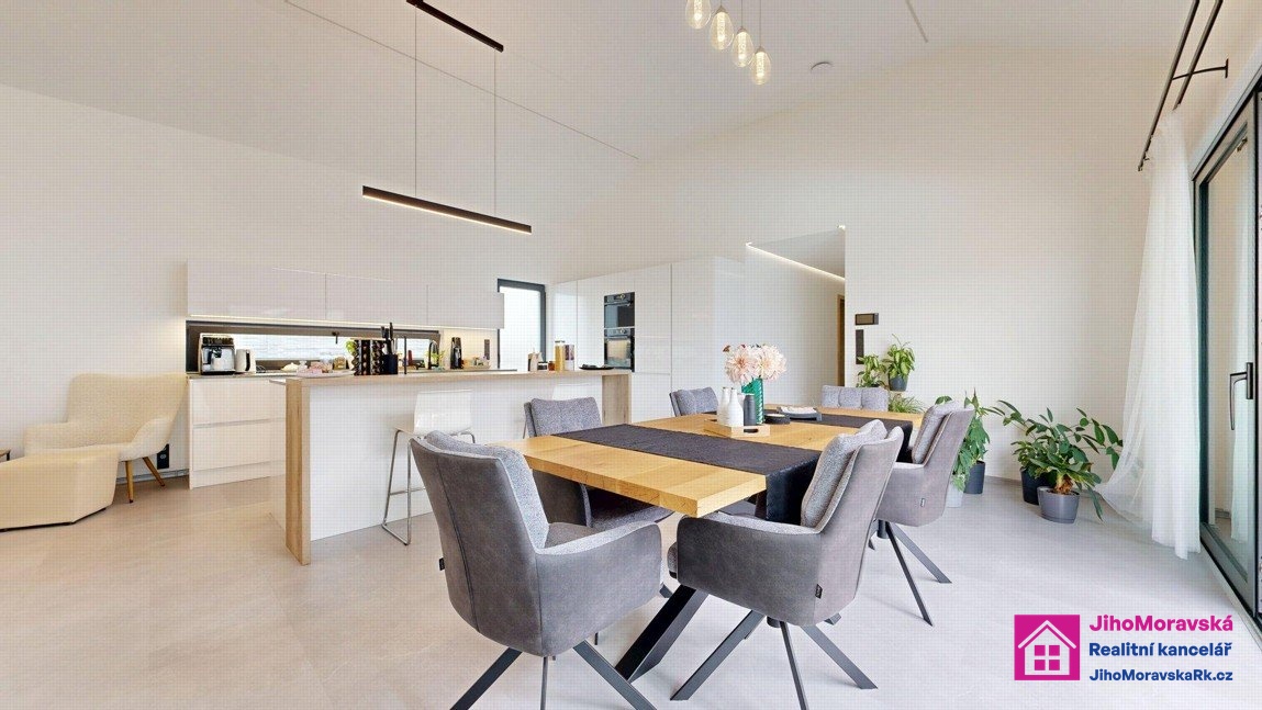 Hledáte Vás nový domov v blízkosti Mikulova nebo s velmi dobrou dostupností do Brna? Ve výhradním zastoupení majitelů, Vám zprostředkuji koupi novostavby rodinného domu o velikosti 5+kk s venkovním bazénem a zahradou ve vyhledávané obci Březí v ulici Břízová. Zastavěná plocha domu je 246 m2 s pozemkem o celkové ploše 853 m2. Obytná plocha domu je 113 m2 s celkovou plochou 203 m2. Kolaudace domu proběhla v 11/2022. Dispozice domu: garáž, předsíň, chodba, technická místnost, toaleta, koupelna (vana i sprchový kout), tři neprůchozí pokoje, obývací pokoj s kuchyňským koutem, pokoj, koupelna (sprchový kout a toaleta) a šatna. Půdorys domu naleznete ve fotogalerii. Rodinný dům je velmi prostorný a nadčasově řešený. Vybaven pouze kvalitními materiály i technikou. Celkové aktuální měsíční náklady na provoz domu jsou ve výši 7.518 Kč (elektřina, voda a stočné)Na zahradě za domem se nachází bazén se slanou vodou. Okolí bazénu a zahradu si můžete doladit dle vlastních představ. Celý pozemek je oplocen. Obec Březí má velmi dobrou občanskou vybavenost (obchod, pošta, kostel, obecní úřad, mateřská i základní škola, restaurace). Kompletní občanská vybavenost se nachází ve městě Mikulov. Do Mikulova dojedete za 8 minut, do Hustopečí za 25 min, do Brna za 40 a do Břeclavi za 30 minut. Termín nastěhování dohodou. Zaujala Vás tato nabídka? Máte zájem o prohlídku? Vám vyhovující termín prohlídky (datum a čas) s kontakty na Vás (e-mail + tel. číslo) zasílejte formou odpovědi na tuto inzerci. Realitní makléř Vás následně bude telefonicky kontaktovat.