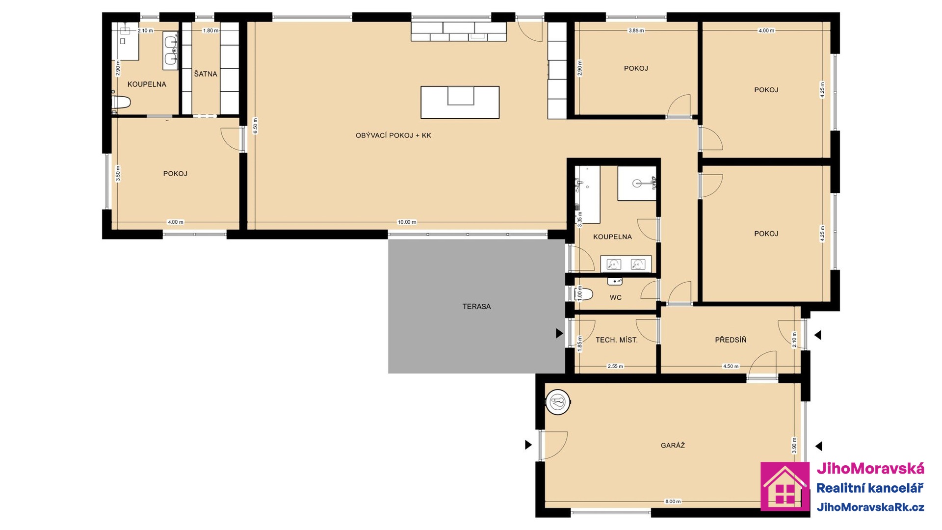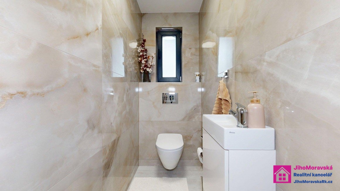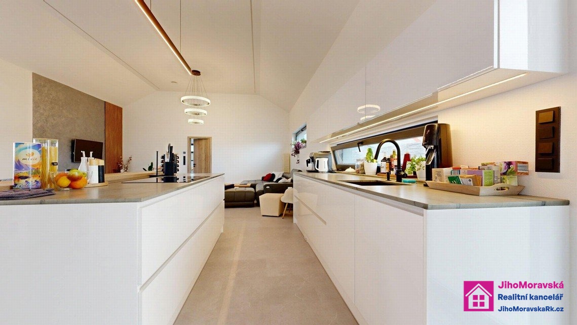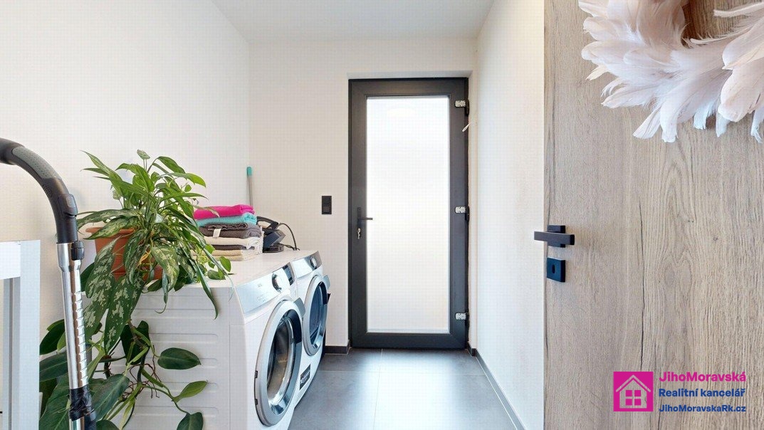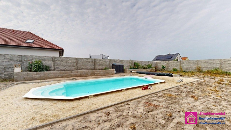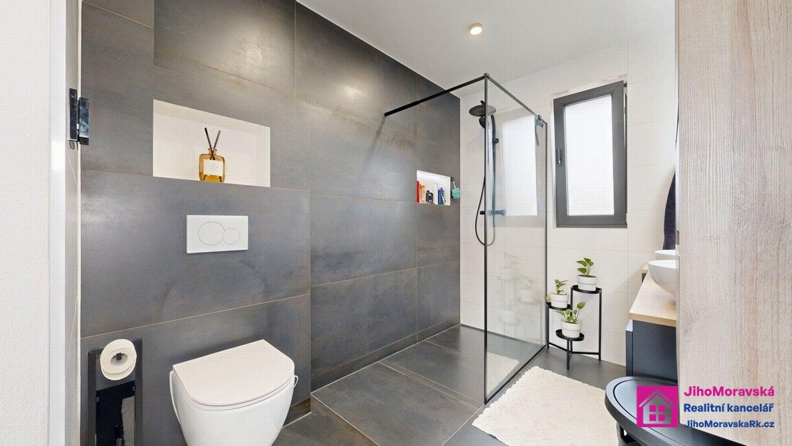 Hledáte Vás nový domov v blízkosti Mikulova nebo s velmi dobrou dostupností do Brna? Ve výhradním zastoupení majitelů, Vám zprostředkuji koupi novostavby rodinného domu o velikosti 5+kk s venkovním bazénem a zahradou ve vyhledávané obci Březí v ulici Břízová. Zastavěná plocha domu je 246 m2 s pozemkem o celkové ploše 853 m2. Obytná plocha domu je 113 m2 s celkovou plochou 203 m2. Kolaudace domu proběhla v 11/2022. Dispozice domu: garáž, předsíň, chodba, technická místnost, toaleta, koupelna (vana i sprchový kout), tři neprůchozí pokoje, obývací pokoj s kuchyňským koutem, pokoj, koupelna (sprchový kout a toaleta) a šatna. Půdorys domu naleznete ve fotogalerii. Rodinný dům je velmi prostorný a nadčasově řešený. Vybaven pouze kvalitními materiály i technikou. Celkové aktuální měsíční náklady na provoz domu jsou ve výši 7.518 Kč (elektřina, voda a stočné)Na zahradě za domem se nachází bazén se slanou vodou. Okolí bazénu a zahradu si můžete doladit dle vlastních představ. Celý pozemek je oplocen. Obec Březí má velmi dobrou občanskou vybavenost (obchod, pošta, kostel, obecní úřad, mateřská i základní škola, restaurace). Kompletní občanská vybavenost se nachází ve městě Mikulov. Do Mikulova dojedete za 8 minut, do Hustopečí za 25 min, do Brna za 40 a do Břeclavi za 30 minut. Termín nastěhování dohodou. Zaujala Vás tato nabídka? Máte zájem o prohlídku? Vám vyhovující termín prohlídky (datum a čas) s kontakty na Vás (e-mail + tel. číslo) zasílejte formou odpovědi na tuto inzerci. Realitní makléř Vás následně bude telefonicky kontaktovat.