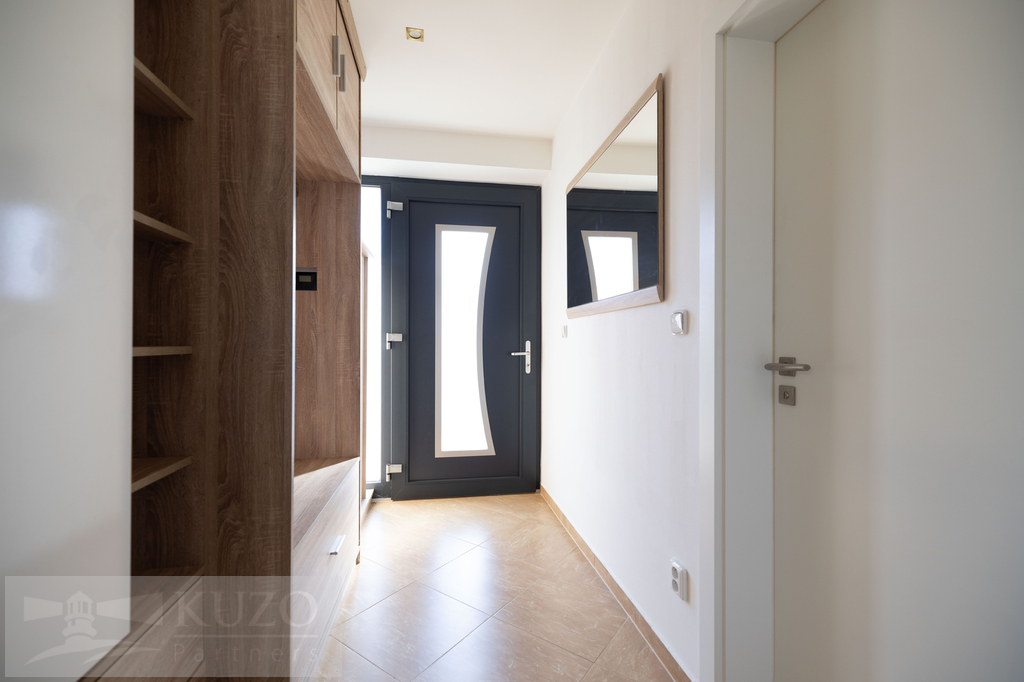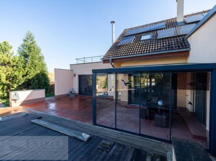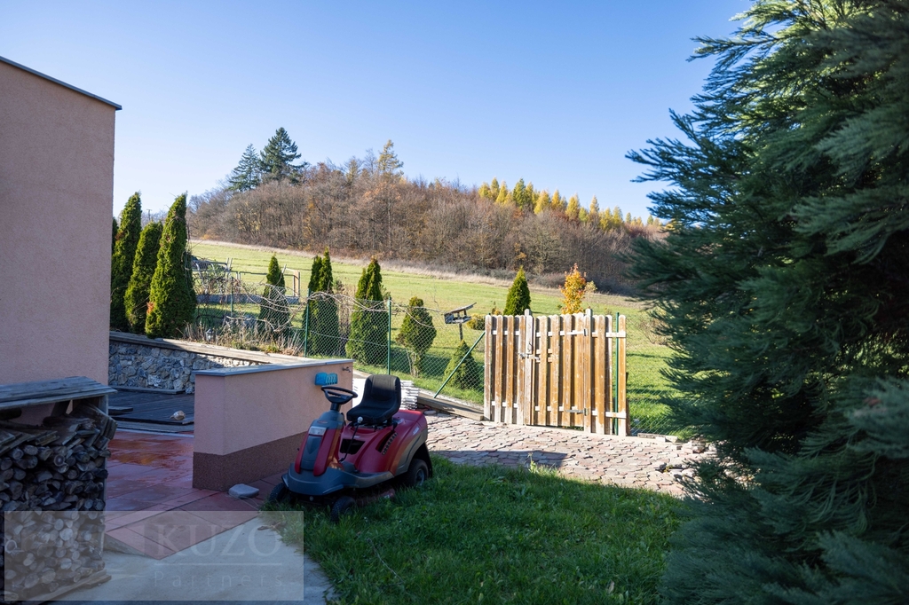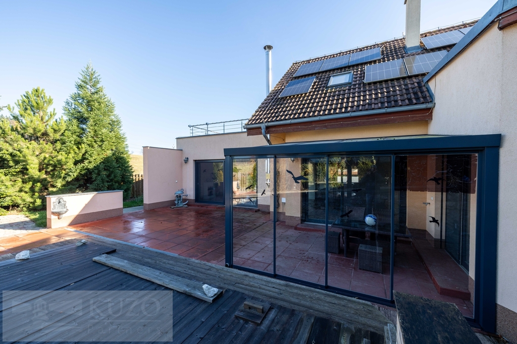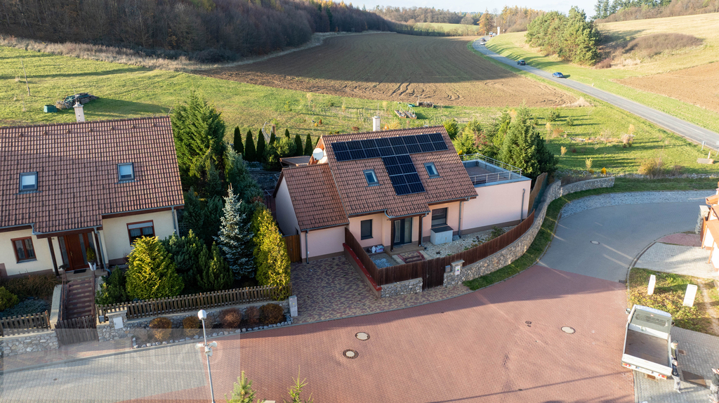 Nabízíme k prodeji moderní rodinný dům 5 + kk o podlahové ploše 202 m², nacházející se v malebné obci Březina u Křtin, pouhých 15 minut od Brna. Zastavěná plocha a nádvoří: 627 m² Podlahová plocha domu: 202 m² Užitná plocha: 184m2 Zastavěná plocha domu: 178m2 Pozemek kolem domu: 449m2 Další pozemek – orná půda: 4 445 m² Celková výměra pozemků: 5 072 m² Celkové náklady: elektřina dle vlastní spotřeby cca 8.500,-Kč/měsíc + spotřeba vody Rok výstavby: 2008 Přístavby a dílčí rekonstrukce: 2015–2016 Energetický standard: zateplený dům s dvojskly Dispozice a vybavení: V přízemí (126,17m2) se nachází vstupní chodba s šatní skříní a botníkem, prostorný obývací pokoj s krbem, jídelna s kuchyňským koutem s vestavěnými el.spotřebiči, samostatné WC, prostorná šatna s úložným prostorem pod schodištěm, ložnice s šatnou, koupelna se sprchovým koutem, WC, 2xumyvadlo, sauna, technická místnost. V podkroví ze tří ložnic vznikl jeden členitý otevřený pobytový prostor (57,42m2) se vstupem na terasu 18,04m2, koupelna a WC, lze uvést do původního stavu. Vytápění zajišťuje elektrický kotel s podlahovým topením, doplněný krbem na dřevo, el. krbovými kamny. Dům je vybaven změkčovačem vody, fotovoltaickou elektrárnu (FVE), je napojen na obecní vodovodní řád a kanalizaci. Pozemek o rozloze 449m2 s bazénem nabízí soukromí a prostor pro odpočinek. Na zahradu navazuje louka (4 445 m²), na KN vedeno jako orná půda v rámci CHKO III, Moravský kras. K domu vede asfaltová komunikace, (věcné břemeno), parkování je možné na pozemku. Dům je situován v klidné části obce v blízkosti CHKO III, Moravský kras a nabízí kombinaci moderní technologie, komfortního bydlení a krásného okolí. Nemovitost je ideální pro rodinné bydlení v přírodě s výbornou dostupností do Brna a Blanska. Březina u Křtin je vyhledávanou lokalitou díky své blízkosti k Brnu, krásné přírodě Moravského krasu a vysoké kvalitě života. Okótované půdorysy a další fotografie zašleme na vyžádání. Prohlídky možné po domluvě s níže uvedeným makléřem.