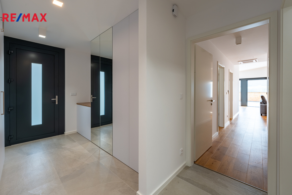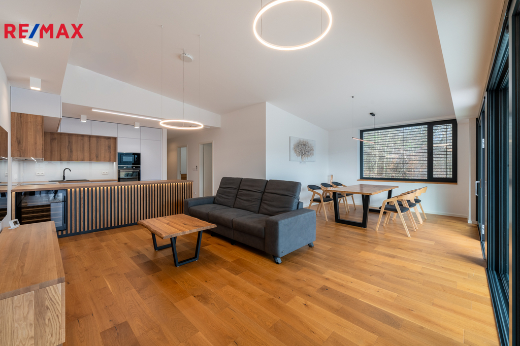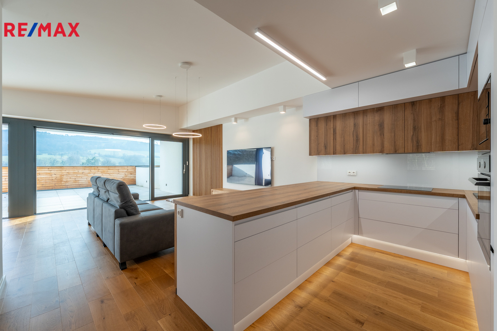 Luxusní pronájem – nadstandardní, kompletně zařízený byt s terasou 50 m² | Březnice u Zlína 678 Nabízíme vám výjimečnou příležitost k pronájmu exkluzivního bytu o podlahové ploše cca 100 m², který se nachází v klidné a vyhledávané lokalitě Březnice u Zlína. Tento byt je unikátní nejen svým nadstandardním provedením, ale i maximálním komfortem, který nabízí. ✔ Nadstandardní vybavení a špičkové materiály Byt byl kompletně dokončen a zařízen s důrazem na kvalitu: Dubové masivní podlahy Luxusní kuchyňská linka od stolaře – včetně všech spotřebičů (myčka, trouba, varná deska, lednice, digestoř...) Designové osvětlení v celém bytě Plně zařízené všechny pokoje – jídelní stůl, sedací souprava, TV stěna, postele, vestavěné skříně, dekorace Tento byt opravdu stačí pouze si přinést osobní věci. O zbytek je dokonale postaráno. ✔ Dispozice, která nadchne Prostorná vstupní chodba s velkorysou sestavou vestavěných skříní Samostatná toaleta Technická místnost s pračkou a sušičkou Koupelna se sprchou, velkým úložným prostorem a další toaletou Ložnice s manželskou postelí Dětský pokoj Obývací pokoj propojený s kuchyní – krásně světlý, vzdušný, s přímým vstupem na terasu ✔ Terasa 50 m² – vaše soukromá oáza Z obývacího pokoje vstoupíte na opravdu obrovskou terasu orientovanou do zeleně – ideální na relax, grilování, posezení s rodinou nebo ranní kávu. Takto velké terasy se u bytů prakticky nevyskytují. ✔ Komfortní a úsporné bydlení Tepelné čerpadlo – extrémně nízké náklady na provoz Klimatizace pro maximální komfort v létě Energetická náročnost budovy B – úsporná Klidné okolí s perfektní dostupností do Zlína