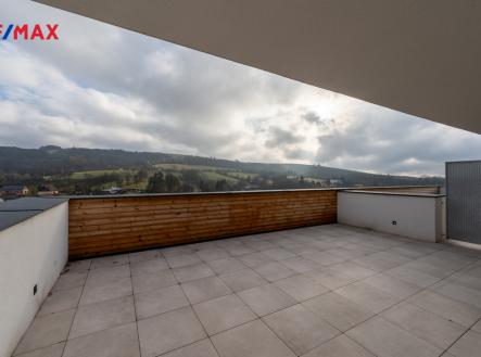 Luxusní pronájem – nadstandardní, kompletně zařízený byt 100 m² s terasou 50 m², 2 parkovací stání