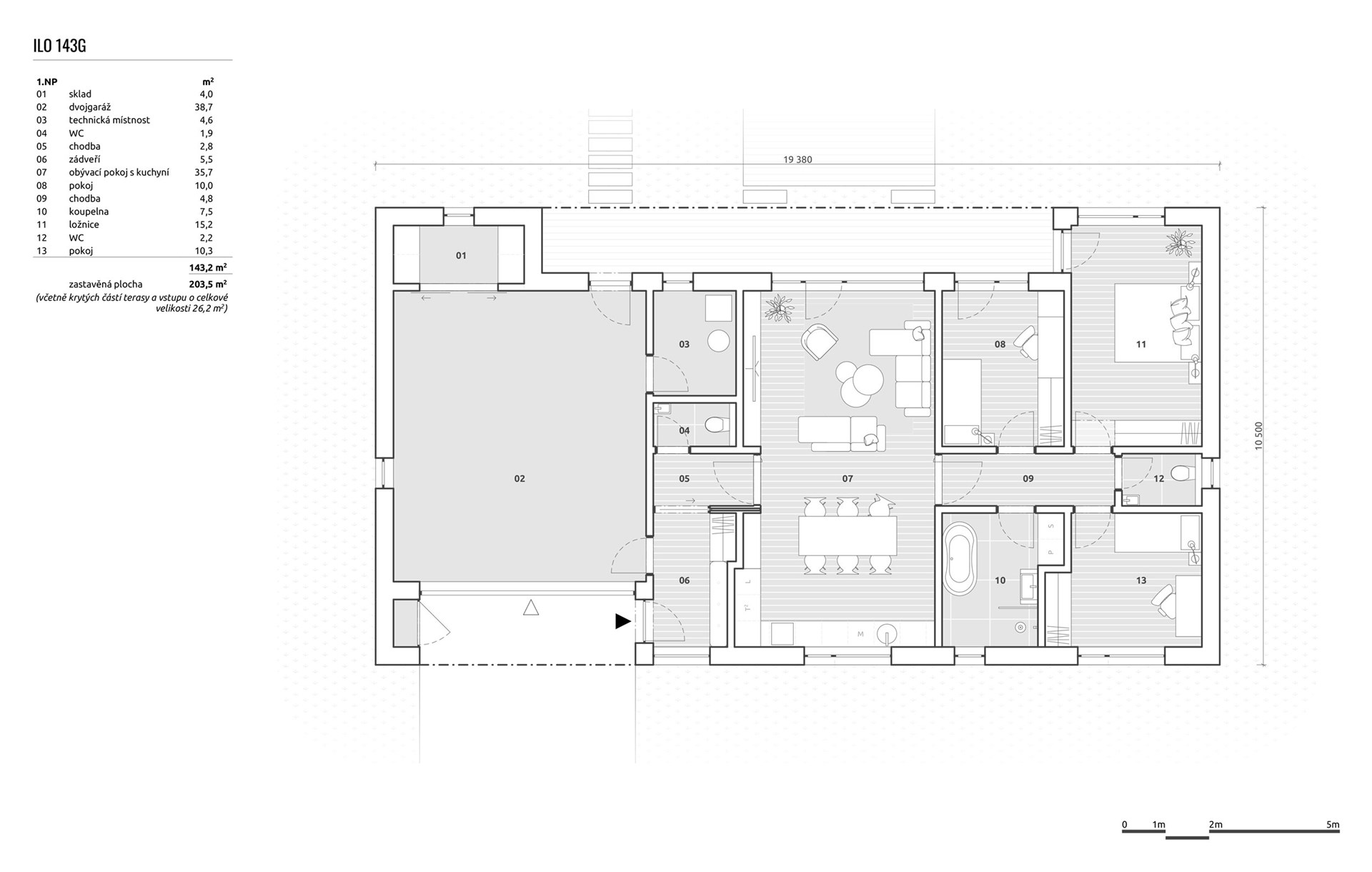 Ve spolupráci s majitelem pozemku, vám exkluzivně nabízíme jedinečnou příležitost pořídit si úspornou dřevostavbu na klíč – model ILO 143G. Tato nabídka zahrnuje prostorný pozemek o velikosti 1003 m² včetně zajištění kompletní výstavby. Co je zahrnuto v ceně? Pozemek i dům s kompletním dokončením interiéru, včetně projektové dokumentace, ČOV, retenční nádrže, přípojek a základních terénních úprav. Vybavené koupelny a WC – včetně sanitární výbavy. Vnitřní dveře, podlahové krytiny, obklady a dlažby – vše ve vysoké kvalitě. Moderní design a praktické řešení pro pohodlné bydlení. Upozornění: Kuchyňská linka není součástí dodávky, abyste si ji mohli přizpůsobit svým představám. Proč si vybrat právě tento dům? ✅ Nízké náklady na bydlení: Úsporná dřevostavba s kvalitním zateplením. ✅ Komfortní teplo: Teplovodní podlahové vytápění s tepelným čerpadlem a TUV nádrží. ✅ Kompletní infrastruktura: Napojení na všechny inženýrské sítě. ✅ Ekologické řešení: Retenční nádrž na dešťovou vodu. ✅ Připraveno k životu: Včetně základních terénních úprav. Přizpůsobte si ho podle sebe! Máte možnost ovlivnit vzhled svého nového domova: Vyberte si odstíny vinylových podlah, koupelnových obkladů a dekorů dveří. Zvolte si ze dvou odstínů venkovní fasády, které se vám nejvíce líbí. Dispozice a parametry: Typ domu: Bungalov Dispozice: 4+kk + dvojgaráž Užitná plocha: 143 m² Zastavěná plocha: 204 m² Rozměry domu: 19,4 x 10,5m Nenechte si ujít tuto jedinečnou šanci na moderní a úsporné bydlení! Podrobný popis dřevostavby a půdorys naleznete v galerii. Zaujala vás tato nabídka? Kontaktujte nás ještě dnes a domluvte si prohlídku!