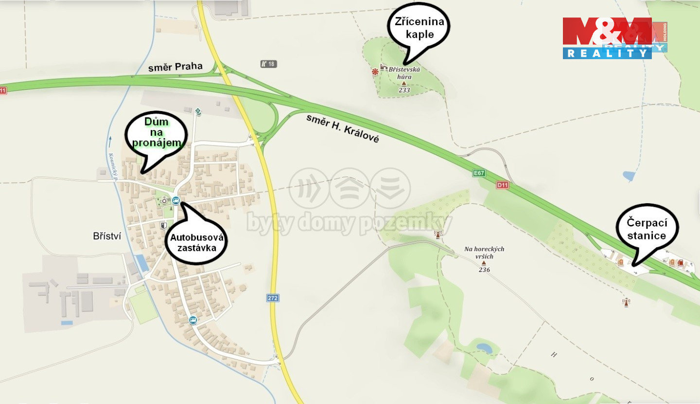 Nabízíme vám k pronájmu moderní byt 1+kk o velikosti 37,8 m² v obci Bříství. Byt se nachází v klidné lokalitě s výbornou dopravní dostupností – v těsné blízkosti se nachází nájezd na dálnici D11 směrem na Prahu a Hradec Králové. Součástí bytu je prostorná terasa o velikosti 30 m², ideální pro relaxaci či posezení venku. Vytápění a ohřev vody zajišťuje tepelné čerpadlo s podlahovým topením, v letních měsících jistě oceníte možnost využití klimatizace. Parkování je zajištěno přímo na pozemku, na vyhrazených parkovacích stáních. Nájemné: 12 000 Kč Poplatky za služby: 3800 Kč / měsíčně Kauce + provize RK. Doporučujeme prohlídku. Pro více informací nás neváhejte kontaktovat.
