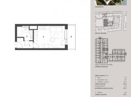 Ve výhradním zastoupení investora nabízíme k prodeji byt s dispozicí 1+kk s balkonem. Velmi pěkný byt vzniká v novém projektu, který navazuje na úspěšnou první etapu. Byt je orientovaný do klidného vnitrobloku a splňuje vysoké nároky na klidné a komfortní bydlení. Koupě bytu je skvělou příležitostí pro startovací bydlení nebo výhodnou investicí. Bytový projekt vzniká v progresivní lokalitě s bohatou kulturní historií a výbornou dostupností do centra města. Jednou z mnoha předností projektu bude uzavřený vnitroblok plný zeleně, kde můžete trávit čas s dětmi nebo jen tak odpočívat. K bytu je možnost přikoupit parkovací stání. Symbiózou nadstandardního zateplení, kvalitních oken, použitých stavebních materiálů a moderních technologií vytápění se podařilo projekt BD LIDO realizovat v energetické třídě A, což znamená mimořádnou úspornost! Dispozice bytu: vstupní chodba (3,5 m²), obývací pokoj s kuchyňským koutem (17,5 m²), koupelna s WC (4,3 m²), balkon (4,6 m²)