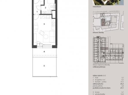 Ve výhradním zastoupení investora nabízíme k prodeji byt s dispozicí 1+kk s terasou a předzahrádkou. Pěkný byt vzniká v novém projektu, který navazuje na úspěšnou první etapu. Byt je orientovaný do klidného vnitrobloku a splňuje vysoké nároky na klidné a komfortní bydlení. Koupě bytu je skvělou příležitostí pro startovací bydlení nebo výhodnou investicí. Bytový projekt vzniká v progresivní lokalitě s bohatou kulturní historií a výbornou dostupností do centra města. Jednou z mnoha předností projektu bude uzavřený vnitroblok plný zeleně, kde můžete trávit čas s dětmi nebo jen tak odpočívat. K bytu je možnost přikoupit parkovací stání. Symbiózou nadstandardního zateplení, kvalitních oken, použitých stavebních materiálů a moderních technologií vytápění se podařilo projekt BD LIDO realizovat v energetické třídě A, což znamená mimořádnou úspornost! Dispozice bytu: vstupní chodba (3,5 m²), obývací pokoj s kuchyňským koutem (17,5 m²), koupelna s WC (4,3 m²), terasa (5,7 m²), předzahrádka (12,0 m²)