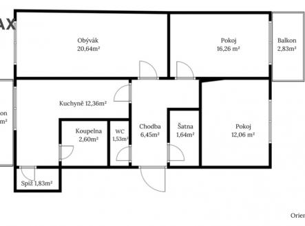 Družstevní byt 3+1 o výměře 78 m² se dvěma balkony (2 × 2,83 m²) a sklepem 2,4 m² se nachází ve 2. patře revitalizovaného domu. Dispozice bytu je velmi praktická a nabízí dostatek úložného prostoru, včetně komory s oknem, kterou současní majitelé využívají i pro umístění lednice. Příjemným a zároveň funkčním detailem je otevřené „okno“ s pultíkem mezi kuchyní a obývacím pokojem, které propojuje obytný prostor a dodává bytu vzdušnost. Dům prošel kompletní revitalizací – má novou střechu, výtahy, zateplení a upravené společné prostory včetně výmalby chodeb. Byt je v původním stavu a je určen k rekonstrukci, což nabízí ideální příležitost upravit si bydlení přesně podle vlastních představ. Nachází se zde umakartové jádro, původní kuchyňská linka i elektroinstalace. Ze vstupní chodby o výměře 6,45 m² je přístup do samostatného WC 1,53 m², obývacího pokoje 20,64 m², dětského pokoje 12,06 m², ložnice 16,26 m² a kuchyně 12,36 m². Z kuchyně se vstupuje do koupelny 2,60 m² a do komory s oknem 1,83 m², na chodbě je dále k dispozici šatna 1,64 m². Na balkony je vstup z kuchyně a z jednoho z pokojů. Orientační půdorys je součástí inzerce. Poplatek za převod členského podílu 15 000,- Kč. Velkou výhodou je možnost převodu bytu do osobního vlastnictví za poplatek 12 000 Kč. Měsíční předpis záloh činí 6 410 Kč, z toho fond oprav 2 566 Kč, správa domu 801 Kč a zálohy na služby 3 043 Kč. Zálohy na elektřinu jsou 1 000 Kč měsíčně a na plyn 400 Kč měsíčně. Byt je vhodný jak pro vlastní bydlení, tak i jako investiční příležitost.