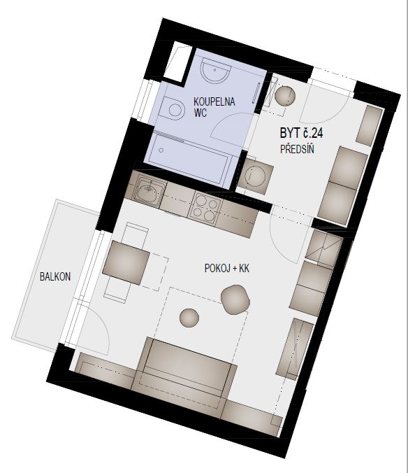 EFI Residence Holzova 28, novostavba 1+kk s balkonem v Brně-Líšni