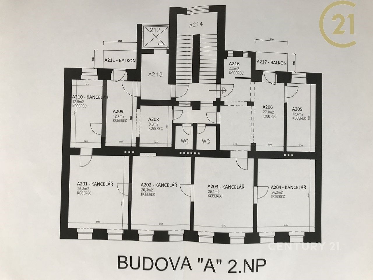 Hledáte místo pro svou firmu v centru Brna s možností parkování a s klidnou rozlehlou zahradou? Ve výhradním zastoupení majitele si dovolujeme vám nabídnout k pronájmu nebytové prostory v 1. patře (2.NP) historického domu s novým výtahem blízko parku Obilní trh. Jak říká majitel: „Na prostředí, ve kterém žijeme nám záleží. Nájemníkům umožňujeme vstup do vzdělávací a komunitní zahrady a na zelenou střechu, které přímo navazují na park Špilberk.“ Světlé kancelářské prostory v dobrém stavu o velikosti 182 m2 se nachází ve 2. Nadzemním podlaží pětipodlažního cihlového domu s výhledem do vnitrobloku a do zahrad pod Špilberkem s možností parkování. Kancelář má k dispozici místnost o výměře 27,1 m2, která nabízí možnost zřízení recepce a její součástí je i kuchyň oddělená příčkou. K dispozici jsou dále 2x balkón, dva oddělené vstupy do kanceláří (možno využít jako vstup pro klienty – recepce/vstup pro zaměstnance), WC, sprcha a výtah. Internet po optickém vlákně. Etážové topení je řešené plynovým kotlem. Ve všech místnostech klimatizace. Dřevěné interiérové dveře a podlahy koberec, parkety a dlažba. Nájem 50.960 (+dph)+ 11.700 služby Provize 75.818 (62.660) Kauce 50.960 Nastěhování ihned Výhodou je i možnost pronájmu parkovacího místa (3.000kč/měs.+DPH) ve vnitrobloku a využití rozlehlé zahrady. Areál disponuje zázemím pro pořádání firemních a společenských akcí: konferenční sál pro 60 osob, zasedací místnosti, venkovní zastřešené pergoly,... Další služby: venkovní bistro se zahrádkou přímo v areálu (dubenříjen), praktický lékař, soukromá školka, advokáti, služby recepce apod. Prohlídky jsou možné po domluvě. Pro více informací kontaktujte makléře.
