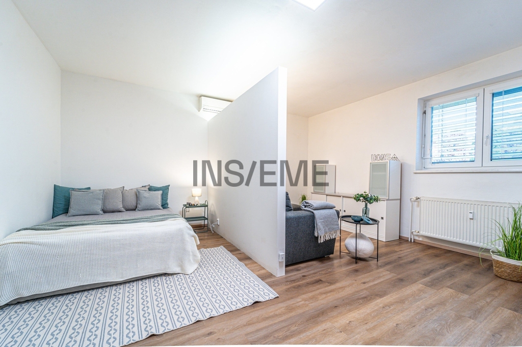 Ve výhradním zastoupení majitele Vám nabízíme k dlouhodobému pronájmu moderní byt o velikosti 39m2 a dispozicí 1+1. Bytová jednotka se nachází v přízemí cihlového domu ve velmi atraktivní lokalitě Brno - Tuřany, která je ideální pro ty, kdo hledají klidné bydlení s veškerou občanskou vybaveností a zároveň ocení skvělou dopravní dostupnost do centra Brna. Tento nedávno zrekonstruovaný byt nabízí moderní bydlení s veškerým komfortem. Samostatný vstup a externí žaluzie poskytují soukromí a bezpečí, zatímco klimatizace zajišťuje příjemnou teplotu po celý rok. Vestavné skříně zaručují dostatek prostoru pro organizaci všech Vašich věcí a částečné přepažení hlavní obývací části umožnilo vytvoření spacího koutu, což dává bytu možnosti a nádech dispozice 2+1. Kuchyň je plně vybavená kvalitními vestavnými spotřebiči jako jsou lednice s mrazákem, myčka, trouba se sklokeramickou deskou a mikrovlnná trouba. Dále nabízí prostor pro umístění pračky a nechybí ani jídelní kout. Stejně tak v koupelně byl maximálně a prakticky využit prostor pro sprchový kout, toaletu a další úložné prostory. Nespornou výhodou tohoto bytu je vlastní parkovací stání přímo u domu. Byt je k dispozici od 1.3.2026.