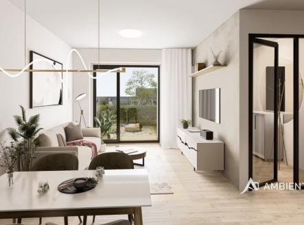 Moderní byt 2+kk (78,7 m²) se zahradou 25,9 m², terasou a parkovacím stáním – Brno, Černovice
