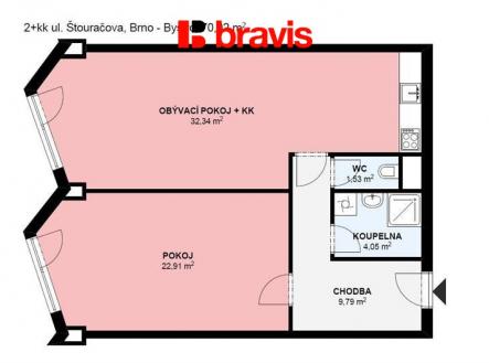 Ve výhradním zastoupení majitele nabízíme k podnájmu byt o velikosti 2+kk na ulici Adamcova, Brno-Bystrc. Slunný byt o celkové ploše 70m2 se nachází v 1. patře novostavby bez výtahu. Byt disponuje obývacím pokojem s kuchyňskou linkou, která je vybavená vestavnými spotřebiči: varná deska, trouba, digestoř, myčka nádobí. Dále je z chodby přístupná samostatná ložnice. Z oken jsou krásné výhledy na okolní lesy. V koupelně je sprchový kout, umyvadlo se zrcadlovou skříňkou a přípojka na pračku. Toaleta je samostatná. Předsín a dále k bytu patří sklep o velikosti 8m2. Možnost připojení internetu a kabelové TV. Krásná lokalita v těsné blízkosti přírody nabízí příjemné a klidné bydlení s velmi dobrou dostupností rušného centra. Zastávka MHD 5 min. chůze. Výborná občanská vybavenost v místě, obchodní centrum, pošta, lékárna, škola, školka, gymnázium. Možnost zajištění jednorázového nebo pravidelného úklidu naší úklidovou službou. Prohlídky jsou možné po domluvě s uvedeným makléřem.