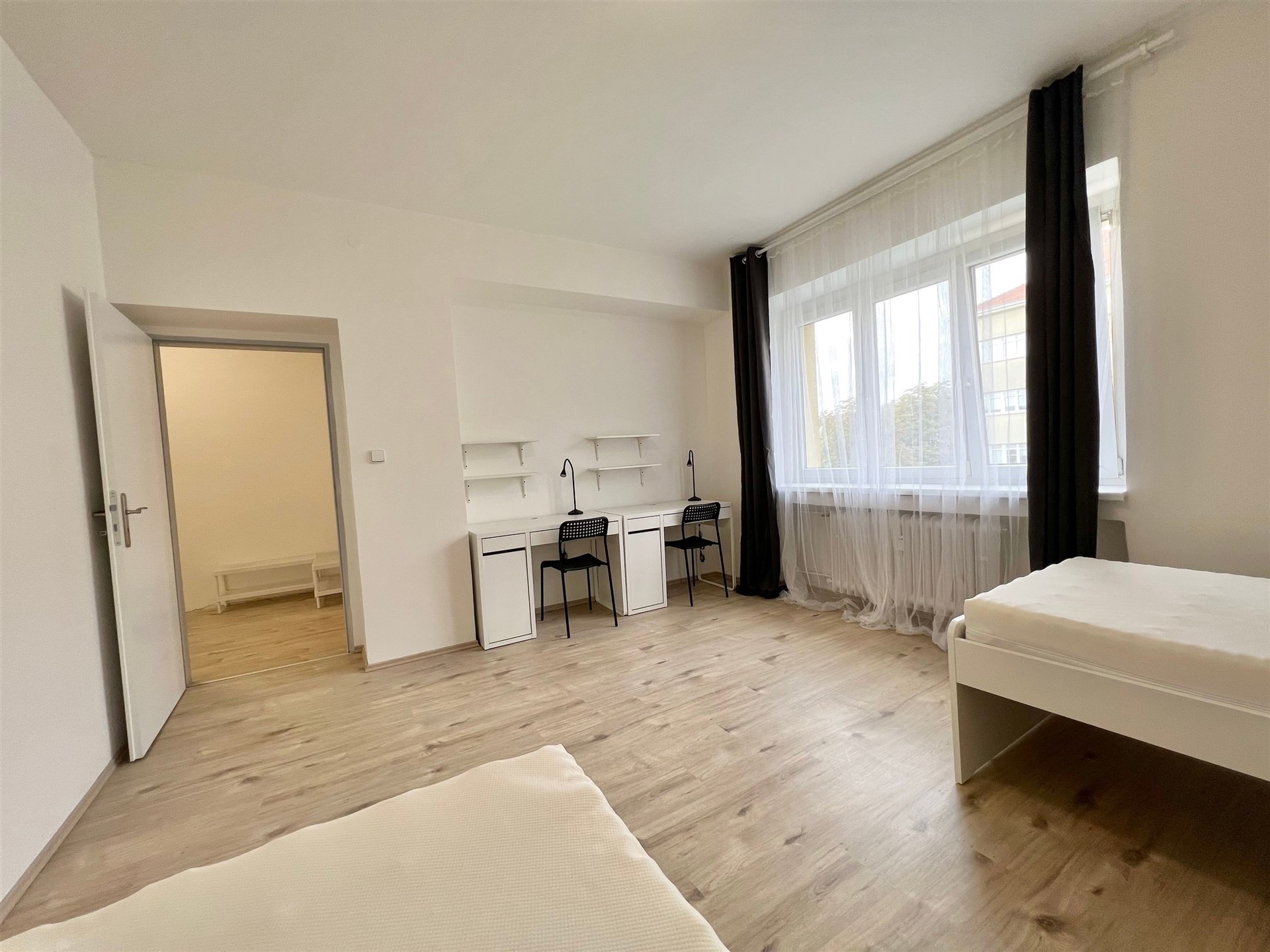 Nabízíme Vám k podnájmu kompletně vybavenou jednotku o celkové výměře 78 m2 a o dispozici 2+1 se vzájemně neprůchozími pokoji V jednotce je dispozici je moderní kuchyňský kout, který je plně vybaven včetně lednice, sporáku s troubou, mikrovlnné trouby, rychlovarné konvice, digestoře a dřezu. Zároveň se v kuchyni nachází jídelní stůl se židlemi. Jednotka dále nabízí dva vzájemně neprůchozí pokoje. V každém pokoji naleznete dvě postele s pohodlnou matrací a dva noční stolečky s lampičkou. Každý pokoj dále nabízí dva pracovní stoly s úložným prostorem, pohodlné židle a velkou skříň. Tato jednotka je tedy kompletně zařízen až pro 4 osoby. Koupelna je také plně vybavená, a to sprchovým koutem a umyvadlem se zrcadlem. K dispozici je příprava pro připojení vlastní pračky. Záchod se nachází odděleně vedle koupelny. Elektřinu si podnájemník přepisuje sám na sebe. Internetové připojení si zajišťuje také sám podnájemce. Jednotka se nachází v atraktivní oblasti v bezprostřední blízkosti centra Brna. Samotné centrum Brna je dostupné v pěší vzdálenosti. V těsné blízkosti se nachází tramvajová zastávka, která Vám zajistí bezproblémové spojení na brněnské univerzity. V okolí se nachází několik obchodů, restaurací, barů a ostatních služeb, které Vám zpříjemní žití na tomto místě. O aktuální dostupnosti a podmínkách Vás budeme rádi informovat. Rádi se s Vámi setkáme na osobní prohlídce.