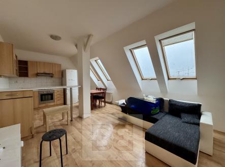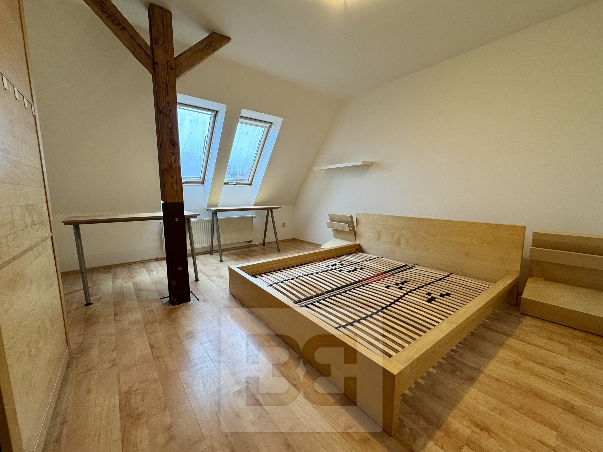 Ve výhradním zastoupení nabízíme podnájem bytu s velmi dobrou dispozicí a velkou užitnou plochou. Bytovou jednotku je možné využít pro bydlení početnější rodiny a nebo studentské bydlení. Byt se nachází v posledním patře cihlového domu s výtahem. Dispozice a popis: Vstupní chodba - předsíň je prostorná, otevřená, diamantového tvaru, prostorná nika na vestavěnou skříň. Všechny pokoje mají samostatné vstupy právě z předsíně. Koupelna je vybavena jak sprchovým koutem, tak i vanou. Místo na pračku i sušičku. Toaleta je samostatná. Všechny tři ložnice Vás překvapí svojí velikostí, příjemným pohledem ze střešních oken a majestátními dřevěný sloup s trámy, které jsou pro tento byt tak typický. Hlavní, společné a obytné část tohoto bytu, kuchyně s obývacím pokojem. Tento největší pokoj disponuje čtyřmi střešními okny. Dvě v obývací části a dvě v části kuchyně. Obývací část je od kuchyňského koutu oddělena barovým pultem. Kuchyňská linka je ve tvaru písmena L. A samozřejmě nemůže chybět typický dominantní sloup, který to dokonale podtrhne. Byt je v původním, ale udržovaném stavu. Na podlaze je dlažba a plovoucí podlaha. Stav odpovídající opotřebení.. Topení a ohřev vody je zajištěno plynovým kotlem. V bytě je možné ponechat po dohodě i vybavení. Budova stojí v blízkosti městské části Černá pole, ulice Vranovská. Dům, ve kterém se byt nachází je monitorovaný kamerovým systémem. Náleží k němu menší dvorek ve vnitrobloku, kde je možné zaparkovat, vynosit nákup nebo tašky z dovolené a v klidu vše přesunout výtahem do bytu. Byt se nachází v 5. patře cihlového domu s výtahem. Na patře jsou pouze 3 bytové jednotky. Veškerá občanská vybavenost v okolí domu. Byt je volný a ihned k nastěhování. Nájemné 29500 + zálohy okolo 4,5tis. Vratná kauce 1x nájem vč. poplatků, provize 1x nájem vč. poplatků+ DPH. Pozor, velkou výhodou pro potenciální nájemce je, že byt je v profesionální správě společnosti Bohemian Estates, jenž správu pro majitele tohoto bytu vykonává. Nájemci je k dispozici kontaktní osoba, která řeší veškeré záležitosti s nájmem spojené (údržba, platby nájemného, vyúčtování, dodatky, a pod.). Nájemci je tak zajištěno bezproblémové užívání bytu s kompletním servisem.