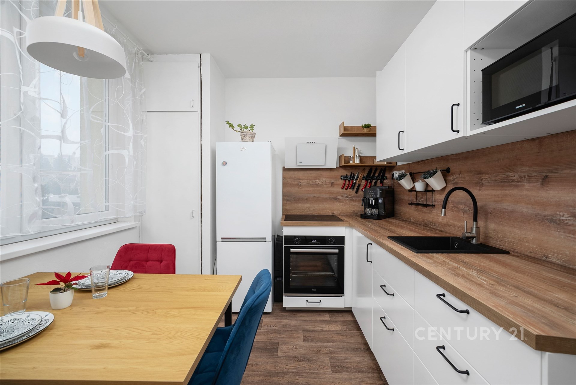 Nabízíme k prodeji byt 1+1 o celkové ploše 49 m², který prošel kompletní rekonstrukcí. Nachází se ve 4. patře panelového domu v klidné části Králova Pole. Obytný pokoj je rozdělen příčkou na dvě samostatné části, takže je možné prostor využít jako obývací pokoj s ložnicí nebo jako obývací pokoj s pracovnou. Kuchyně má kuchyňský kout s prostorem pro jídelní stůl. Koupelna s WC je vybavena sprchovým koutem. V chodbě je umístěna skříň, která poskytuje praktický úložný prostor. Vstupní dveře jsou bezpečnostní, protipožární a vybavené systémem proti zabouchnutí, což zvyšuje bezpečí i komfort při každodenním používání. Součástí bytu je lodžie orientovaná na jihovýchod, sklepní kóje a možnost využívat kočárkárnu. Dům je po revitalizaci, včetně zateplení a nové fasády, což přináší lepší energetickou náročnost a nižší provozní náklady. V bytě jsou nová plastová okna a v domě je výtah. Energetický štítek budovy je C. Měsíční výdaje spojené s užíváním bytu činí celkem 5 241Kč, z toho 1 048 Kč představuje příspěvek na správu domu a pozemku, 3 593 Kč zálohy na služby a 600 Kč záloha za elektřinu pro 2 osoby. Byt se nachází v klidné části Králova Pole, na ulici Božetěchova. V okolí je základní škola, dětské hřiště, obchody i další služby. Zastávka MHD je pár minut od domu a do centra Brna se dostanete přibližně za 15 minut. Parkování je možné v modré zóně C. Díky kompletní rekonstrukci nevyžaduje byt žádné další investice a je připraven k okamžitému nastěhování. Praktické dispoziční řešení a klidná lokalita z něj dělají ideální volbu pro jednotlivce, pár nebo jako bezstarostnou investici.