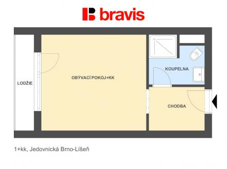 Prodej bytu 1+kk, ul. Jedovnická, Brno - Líšeň, zařízený, lodžie, prostorný sklep