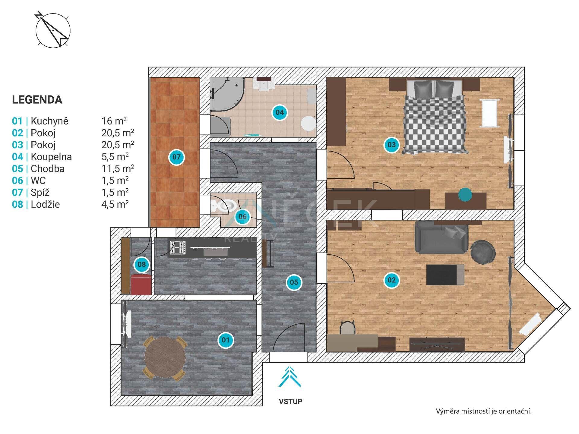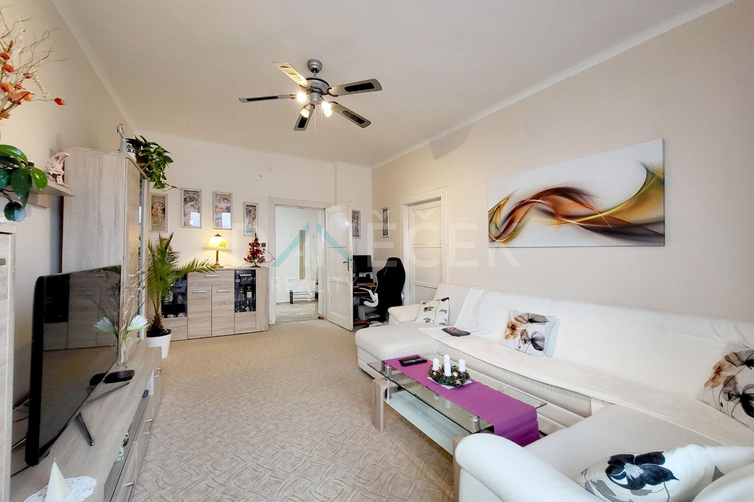 Hledáte byt, který má něco navíc? Místo, kde se propojí moderní praktické bydlení s atmosférou skutečného domova? Pak vás určitě zaujme tento prostorný byt 2+1 na 83 m² v ulici Tržní v Brně–Černovicích. A ano – je to ten byt s krbem, který doslova umí vytvořit „teplo rodinného krbu“. Byt najdete ve 4. patře udržovaného cihlového domu a součástí je i velkorysý sklep, který bez problémů pojme kola, lyže, sezónní výbavu i pár věcí, ke kterým se nikdy nepřiznáte. Po vstupu do bytu se otevře prostorná chodba, z níž se dostanete do všech místností. Obývací pokoj vás přivítá světlem a příjemnou atmosférou. O tu se stará cihlový krb v rohu, který dělá z této místnosti srdce celého bytu. Ať už chcete posedět s knihou nebo si vytvořit relaxační atmosféru při práci, tady to půjde samo. Ložnice působí jako klidová zóna – dřevo, světlo, teplé tóny a výhled na město. Je to prostor, kde se snadno vypnete po celém dni. Kuchyň je jednoduchá, praktická a útulná, ideální pro vaření bez chaosu. Lodžie orientovaná do klidného vnitrobloku je pak ideálním místem pro kávu, snídani nebo večerní posezení. Vnitroblok samotný vás možná překvapí – je tu dětské hřiště, zeleň, lavičky… a celkově atmosféra malého komunitního světa schovaného mezi domy. A lokalita? Černovice jsou sázkou na jistotu. MHD je prakticky za rohem a cesta do centra trvá jen kolem 12–13 minut. V okolí najdete školy, školky a obchody pro každodenní potřeby. Milovníci přírody ocení, že do Černovického hájku se dostanete pěší chůzí za zhruba 45 minut (3,5 km). Parkování je regulováno zónou C, což znamená, že je kde bezpečně zaparkovat. Tento byt doporučuji všem aktivním jednotlivcům, párům nebo investorům, kteří hledají kombinaci prostoru, charakteru a dobré dostupnosti. Pokud hledáte domov, kde se budete cítit opravdu příjemně, pak tenhle byt rozhodně stojí za návštěvu. Uvedená cena je za nemovitost.
