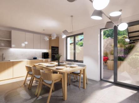 Hledáte klidné bydlení v blízkosti přírody? Exkluzivně nabízíme krásný byt 2+kk v nově zrekonstruovaném řadovém domě na ulici Jírovcova v Brně Kohoutovicích, ideální i jako investiční příležitost. Byt se nachází v 1. NP řadového domu se 4 podlažími a celkovou podlahovou plochou 51 m². Ve 2. a 3. NP je druhá bytová jednotka, mezonetový byt 4+kk. Dispozice bytu: kuchyňský kout s obývacím pokojem – 21,5 m² pokoj – 18,8 m² koupelna se sprchovým koutem samostatné WC terasa do ulice s výhledem na les – 12,3 m² terasa do vnitrobloku – 15,4 m² sklep – 9,8 m² Rekonstrukce: Dům prošel kompletní rekonstrukcí zahrnující: Exteriér: zateplení, nové omítky, okna s termoizolačním trojsklem, hliníkové rámy a žaluzie, nové garážové a vchodové dveře, příprava na fotovoltaické panely a klimatizaci. Interiér: výměna elektroinstalace, vody a odpadů, nové topení vytápění a ohřev TUV zajišťuje vlastní plynový kotel, koupelna – obklady a sanita, vinylové podlahy v kombinaci s velkoformátovou dlažbou a bezfalcové interiérové dveře. Dům má vyhotoveno Prohlášení vlastníků – celkem 3 bytové jednotky. Energetická třída domu je C. Zpracována nová pasportizace domu. Byt bude předáván bez kuchyňské linky a interiérového osvětlení (není zahrnuto v ceně). Návrhy kuchyňských linek jsou připraveny. Výběr dle preferencí nových majitelů, stejně jako interiérové osvětlení. Cena: 7 299 000 Kč Předpokládaný termín k nastěhování: říjen/listopad 2025. Lokalita: Ulice Jírovcova je typickou rezidenční oblastí obklopenou rodinnými domy a zelení, situována u lesa s krásným výhledem. Kohoutovice nabízejí ideální prostředí pro rodiny a ty, kteří hledají únik od rušného městského života, s dobrou dostupností veřejnou dopravou.