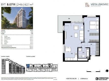 První etapa nového brněnského rezidenčního projektu Vista Lískovec je právě v prodeji! Nabízíme byt 2+kk o celkové výměře 62 m², umístěný v 7. nadzemním podlaž í. První etapa projektu nabídne celkem 260 promyšlených jednotek – od útulných 1+kk pro první bydlení až po rodinné 4+kk a prémiové mezonety v nejvyšších patrech. Většina bytů a ateliérů disponuje balkonem, přízemní jednotky nabízejí soukromé předzahrádky. Od devátého patra výše pak díky unikátnímu tvaru budovy vznikají prostorné terasy s dechberoucími výhledy na široké okolí a dostatkem místa pro trávení volného času. Jsou vybaveny integrovanými květníky, které zajišťují soukromí a nechybí ani praktický venkovní úložný prostor. V přízemí najdete komerční prostory pro služby, které zpříjemní život rezidentů. Samozřejmostí jsou garážová stání, sklepy, kolárna, myčka kol i uzavřený vnitroblok plný zeleně s dětským hřištěm a relaxačními zónami. Lokalita vás nezklame. Vista Lískovec se nachází v oblíbené části Brna – Starém Lískovci – jen pár kroků od zastávky šaliny Západní brána a v těsné blízkosti Jihlavské ulice. V pěší vzdálenosti máte školky, školy, nákupní centrum Campus Square, Fakultní nemocnici, kampus Masarykovy univerzity i sportovní areály. V okolí nechybí ani lesopark, přírodní rezervace Kamenný vrch nebo rozsáhlý park Bobrava. Plánované dokončení projektu je ve 4.Q roku 2028. Cena nezahrnuje garážové stání a sklep – jednotková cena garážového stání je od 700 000 Kč vč. DPH, cena sklepu dle velikosti. Prodej probíhá přímo od developera. Pro více informací nás neváhejte kontaktovat.