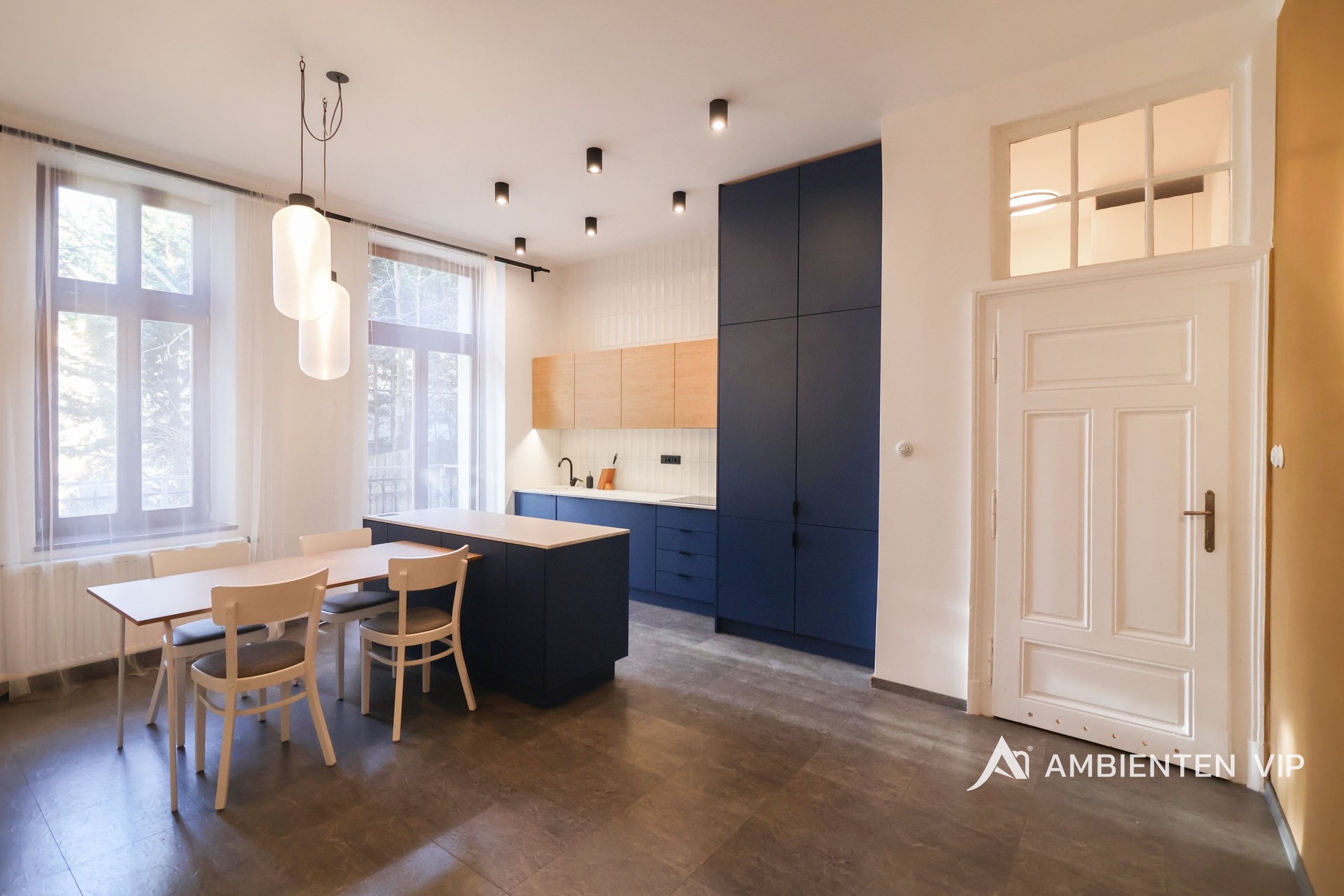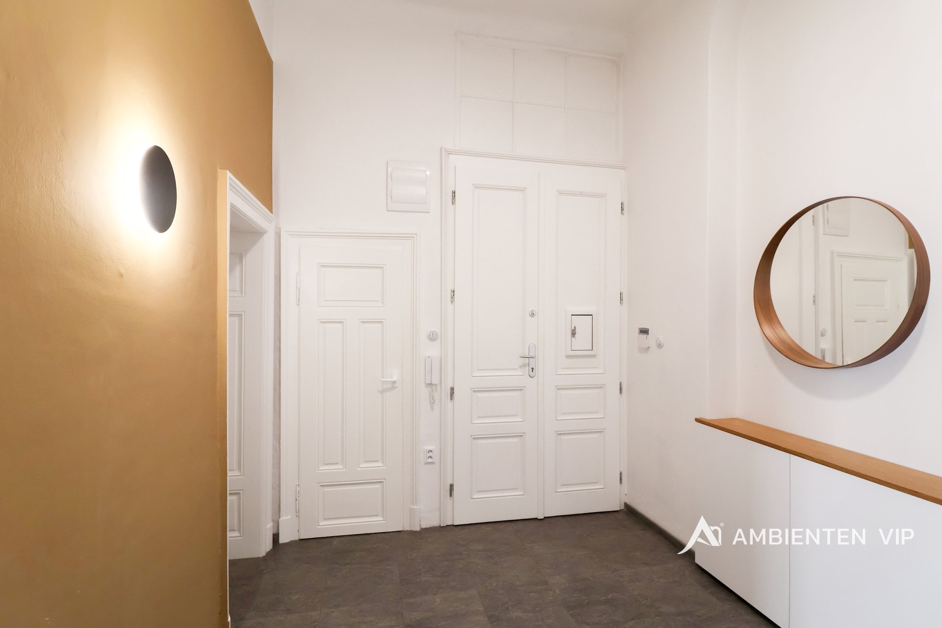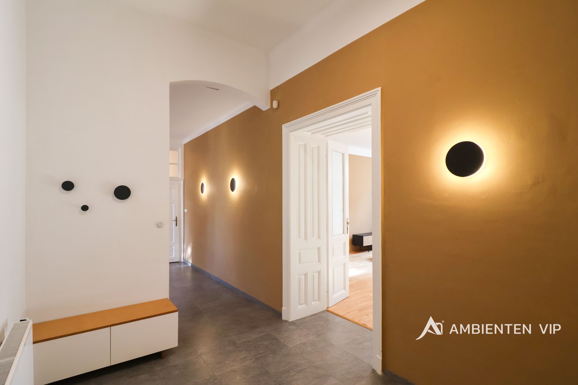 AMBIENTEN VIP exkluzivně nabízí k prodeji jedinečný byt o dispozici 3+1 s balkonem, s možností úpravy dispozice na 4+1, nacházející se v neorenesančním domě postaveném v letech 1904–1906 na ulici Schodová, v jedné z nejvyhledávanějších rezidenčních lokalit širšího centra Brna. Byt o celkové podlahové ploše 143,49 m² se nachází v 2. nadzemním podlaží a nabízí velmi prostorné místnosti s vysokými stropy, které dodávají interiéru vzdušnost a reprezentativní charakter. Celý prostor zároveň nese jedinečný genius loci tohoto domu. Prostory bytu jsou kompletně zařízené a připravené k okamžitému nastěhování. Dispozici bytu tvoří vstupní chodba o velikosti 12,24 m², ze které je přístup do jednotlivých místností. Dominantou bytu je velkorysý obývací pokoj (31,80 m²) a další dva velké pokoje o velikosti přibližně 29–30 m², které mohou sloužit jako ložnice, pracovna či dětský pokoj a jsou orientované na jihovýchod. Součástí bytu je také kuchyně s jídelnou (27,96 m²) doplněná praktickou spíží (1,67 m²), která poskytuje další úložný prostor. Koupelna o velikosti 9,17 m² nabízí vanu a praktické dvojumyvadlo. Toaleta je součástí koupelny a v bytě je navíc k dispozici ještě druhé samostatné WC. Příjemným doplňkem je balkon (2,25 m²) orientovaný do klidného vnitrobloku. Součástí bytu je také zabezpečovací systém, bezpečnostní vstupní dveře a kamerový systém v domě. Vytápění a ohřev vody je zajištěno plynovým kotlem. Pro regulaci teploty je k dispozici termostat. Byt je dále vybaven kombinovanou pračkou se sušičkou. Veškeré vybavení interiéru zobrazené na fotografiích je zahrnuto v ceně. Velkou výhodou jsou také velmi příznivé provozní náklady. Zálohy na energie a služby činí 5.000,- Kč/měsíc. V ceně je parkování přímo u domu. Ulice Schodová patří mezi oblíbené rezidenční lokality v širším centru Brna. Jen pár kroků od domu se nachází Park Lužánky, který je nejstarším veřejným parkem ve městě a nabízí příjemné prostředí pro odpočinek i sportovní aktivity. Okolí je tvořeno převážně historickými městskými domy z přelomu 19. a 20. století, díky nimž má tato část města osobitou atmosféru. V docházkové vzdálenosti jsou restaurace, kavárny, obchody i zastávky MHD a do historického centra Brna se lze pohodlně dostat během několika minut. Lokalita zároveň navazuje na prestižní čtvrť Černá Pole, kde se nachází architektonicky významné stavby, například Vila Tugendhat.