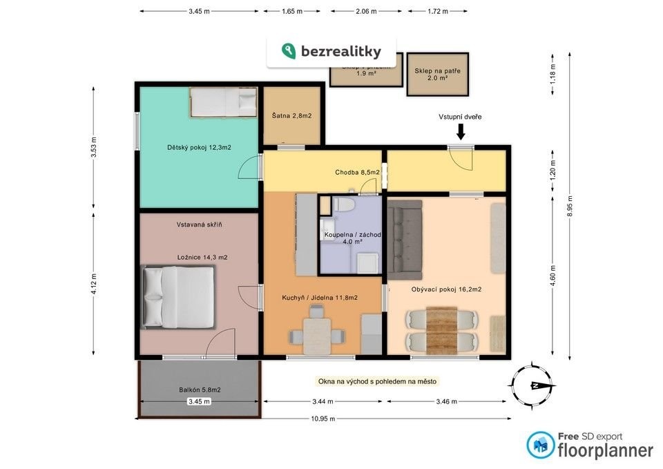 Nabízíme k prodeji hezký slunný byt 3+1 OV o celkové ploše 73 m² na ulici Libušino údolí, v žádané městské části Brno – Kohoutovice. Byt se nachází v 5. patře osmipodlažního panelového domu a zaujme příjemným výhledem do okolí a zelenĕ. Pár kroků za domem je vstup do obory Holedná, lesní školka Šiška, aquapark máte 2 zástávky. Dispozice a stav bytu: Součástí bytu je vstupní hala, obývací pokoj, samostatná kuchyň s moderní kuchyňskou linkou s praktickými vnořenými šuplíky na míru, včetnĕ myčky a špíze, ložnice s věstavěnou skříní, dětský pokoj, koupelna s WC a praktická šatna. Koupelna je čerstvĕ po rekonstrukci (2025). Byt má nové bezpečnostní dveře a během rekonstrukce došlo k výměně všech dveří a zárubní za Sapeli (3x zasouvací). K bytu náleží dvě samostatné sklepní kóje, 1 sklep přímo na patře a 1 sklep v přízemí v společných prostorech domu. Na bytě není díky dobrému hospodaření SVJ žádný úvěr. Měsíční náklady na teplo, vodu a služby činí 5.700 Kč při obsazení 4 osobami. Navíc každá bytová jednotka dostáva podíl z pronájmu střechy mobilním operátorům (za rok 2024 11tis). Energetický štítek třídy C svědčí o ekonomické provozuschopnosti budovy. Byt bude volný k nastěhování od léta 2026 (uvolnění 1.7.-31.8.). Dotazy a sjednání prohlídky je možné řešit prostřednictvím zpráv na komunikační platformě. Tato nemovitost je určena výhradně přímým zájemcům o koupi. Na inzerát můžete také reagovat přímo na webu Bezrealitky.