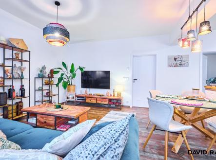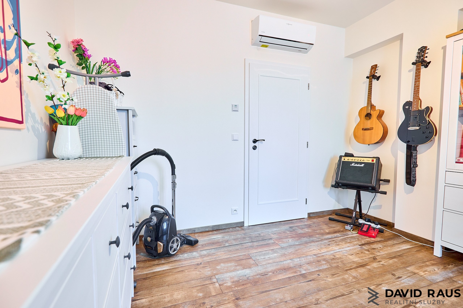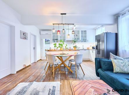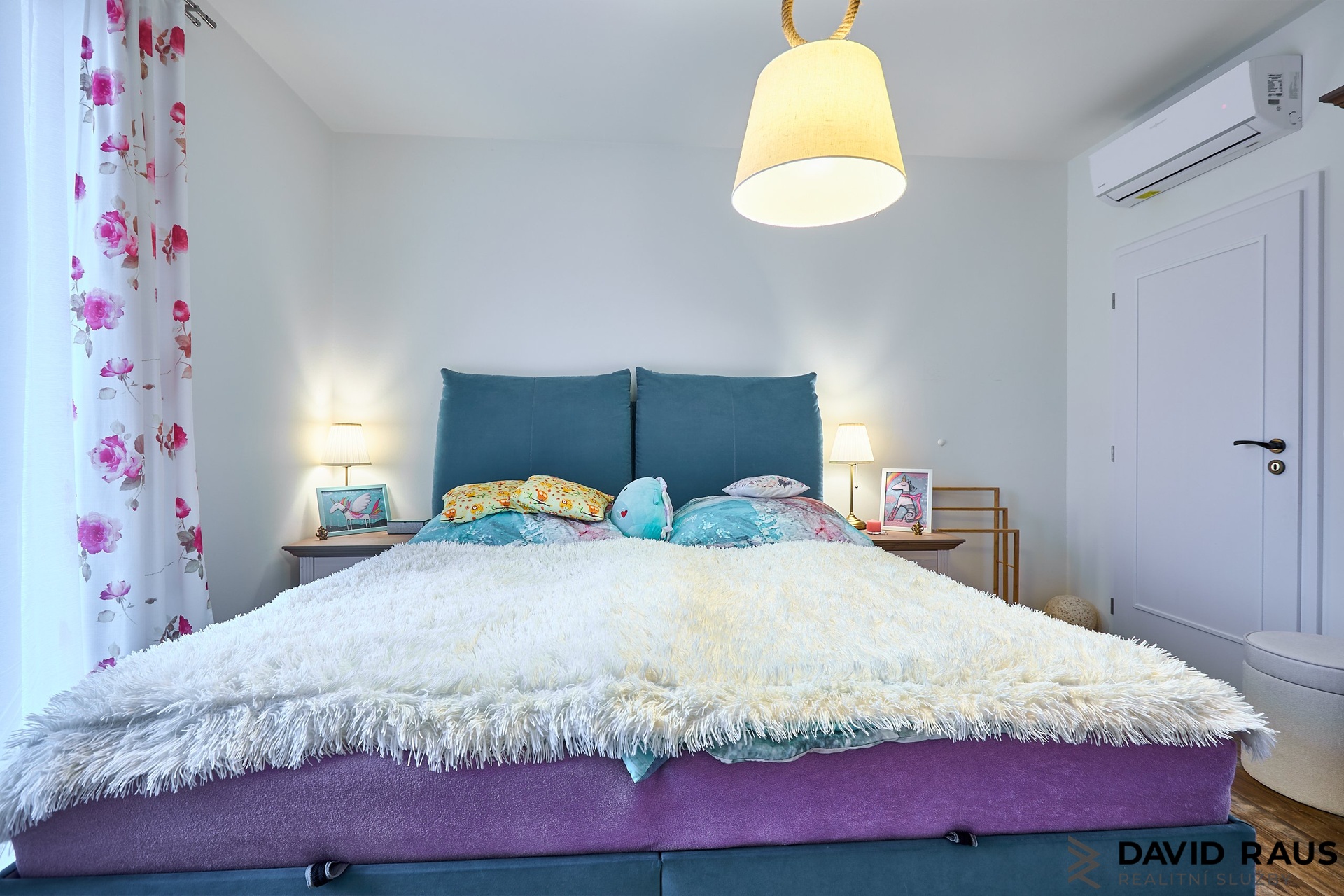 Nabízím k prodeji prostorný byt o dispozici 3+kk a celkové výměře 87,2 m², který se nachází v 2. nadzemním podlaží bytového domu na ulici 1. května v Brně. Součástí prodeje je dvougaráž, zděný sklep a možnost využívání společných prostor - kočárkárny a terasy. Dispozice bytu Po vstupu do bytu se ocitnete v předsíni o velikosti 7,40 m², kde jsou vestavěné skříně poskytující dostatek úložného prostoru. Z předsíně se plynule dostanete do všech dalších částí bytu. Nejprve míjíte samostatné WC o výměře 1,50 m² a následně vstupujete do koupelny o velikosti 7,20 m². Koupelna je vybavena vanou a dvěma samostatnými umyvadly umístěnými na desce vyrobené na míru, pod kterou se nachází praktický úložný prostor. Velkou výhodou je také okno umístěné ve výšce přibližně 1,80 m, které zajišťuje přirozené světlo i možnost větrání. Prosklenými dveřmi vstoupíte do hlavního obytného prostoru, který tvoří obývací pokoj s kuchyňským koutem o výměře 32,6 m². Kuchyňská část je přirozeně oddělena designovým pultem navazujícím na kuchyňskou linku, což vytváří funkční a přehledné uspořádání prostoru. Součástí kuchyně je také samostatná americká lednice s vestavěným výrobníkem ledu. Z obývacího pokoje vedou dveře do dvou samostatných pokojů. Ložnice o velikosti 16,50 m² je rozlohově větší místností a nabízí přímý vstup na balkon. Druhý pokoj o výměře 14,60 m² lze využít jako dětský pokoj, pracovnu nebo pokoj pro hosty. Technické informace a vybavení V obývacím pokoji i v obou pokojích je instalována klimatizace, která zajišťuje komfort během letních měsíců. Vytápění je řešeno podlahově. Byt je vymalován bílou barvou a ve všech obytných místnostech je položena vinylová podlaha v dekoru dřeva, která působí nadčasově a příjemně. Garáž a další prostory K bytu náleží prostorná dvougaráž s elektrickými vraty na dálkové ovládání o šířce 4,96 m, hloubce 5,60 m a výšce 3,198 m, přičemž zadní část garáže je od poloviny rozšířena na 5,24 m. Součástí prodeje je také zděný sklep. V domě je k dispozici kočárkárna s umyvadlem a společná terasa v posledním patře domu. Byt nabízí praktické uspořádání, dostatek prostoru, vlastní parkování a příjemnou atmosféru. Díky dispozici 3+kk je vhodný pro rodinu i pár, kteří hledají pohodlné bydlení v Brně. Měsíční náklady (2 osoby) Fond oprav: 872 Kč Voda: 600 Kč Elektřina společné prostory + sklepy: 100 Kč Elektřina výtah: 200 Kč Správa domu: 200 Kč Úklid: 200 Kč Provoz SVJ a revize: 100 Kč Celkem zálohy SVJ: 2 272 Kč / měsíc Elektřina v bytě (vytápění + běžná spotřeba) se hradí samostatně dle vlastní smlouvy s dodavatelem. Doporučuji osobní prohlídku, při které nejlépe oceníte dispozici, prostor a celkovou atmosféru bytu. Základní informace Dispozice: 3+kk Celková plocha bytu: 87,2 m² Podlaží: 2. nadzemní podlaží Vytápění: podlahové Klimatizace: ano Balkon: ano Sklep: ano (zděný) Garáž: dvougaráž s elektrickými vraty Veškerá právní servis zajištěn. Nabízím možnost zajištění financování. Pro více informací mě kontaktujte.