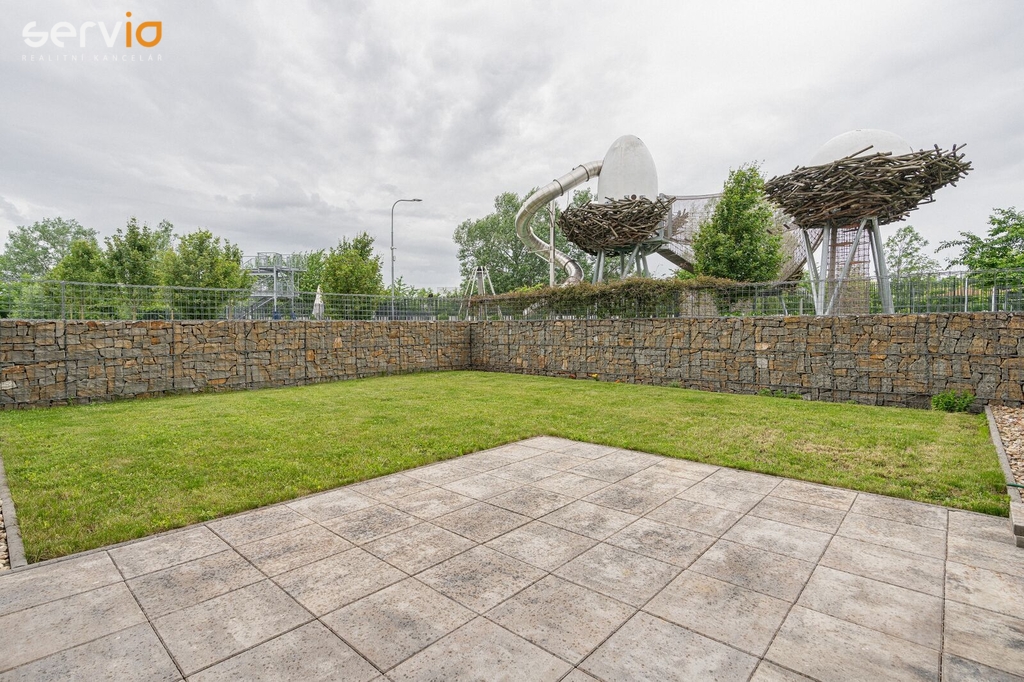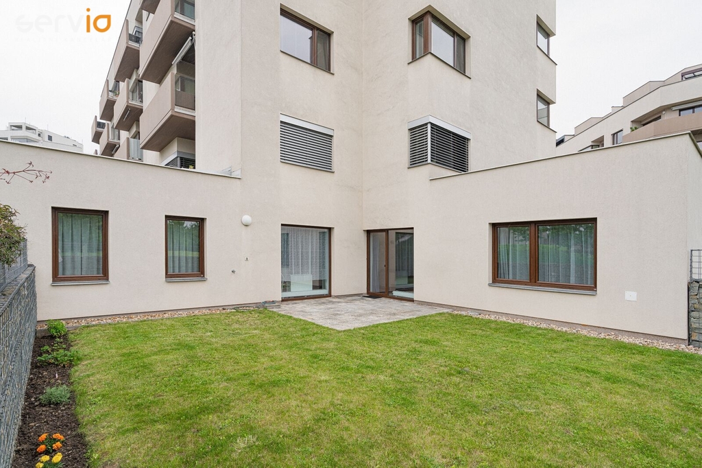 Ve výhradním zastoupení majitele nabízíme k prodeji novostavbu prostorného bytu 3+kk na ulici Kigginsova, v Brně - Slatině, se soukromou zahrádkou v osobním vlastnictví, o celkové užitné ploše 176 m2 (z toho zahrada 91 m2). Byt o ploše 80 m2 je umístěn v 1. NP cihlového domu s bezbariérovým přístupem a jeho součástí je sklep (cca 5 m2) a kryté parkovací stání v 1.PP domu kolaudovaného v roce 2017. V domě je výtah, kolárna - kočárkárna. Sklep se nachází v blízkosti bytu na stejném podlaží. Při vstupu do bytu je prostorná vstupní chodba, samostatné WC s umyvadlem, z chodby navazuje vstup do obytné části bytu, kde je umístěna kuchyně s jídelní částí. Byt se prodává částečně zařízený. KL včetně spotřebičů (indukce Bosch, el. trouba Whirlpool, nová digestoř, myčka a pračka Gorenje). Ostatní nábytek dle foto. Od jídelního stolu je krásný výhled do soukromé zahrádky, která je součástí bytu a vstup na ni je z obývací části navazující na kuchyň s jídelní částí. V zadní částí za kuchyní je ložnice. Vedle obývací části se nachází prostorná koupelna s vanou, místem pro pračku a za koupelnou je vstup do dalšího pokoje (může být pracovna, dětský pokoj, druhá ložnice). Byt je velmi hezky dispozičně řešený a prosvětlený, výhodou je soukromá zahrádka s terasou z dlažby a trávníkem, vývod na vodu a el. zásuvka, soukromí zajišťují ozdobné gabiony. Byt se prodává včetně vnitřního vybavení, sklepu a krytého parkovacího stání. Je vhodný pro rodinu s dětmi. Součástí oblíbeného a vyhledávaného komplexu je moderní dětský park (zavírá kolem 19 hodiny), posilovna, kavárna, možnost i venkovního parkovaní, bezprostřední blízkost zastávky MHD, OC Nová Slatina. Výborná dopravní dostupnost do centra (autem cca 5 min., MHD 20 min.). V blízkosti bydliště MHD (včetně nočních spojů), několik supermarketů a dalších obchodů, či napojení na Olomouckou (Ostravskou) radiálu, sloužící jako východní přivaděč k dálnici D1. Energetická třída B, plastová okna, centrální vytápění.