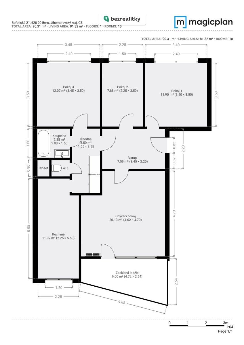 Nabízím k prodeji prostorný byt o dispozici 4+1 v osobním vlastnictví o užitné ploše 82 m² s lodžií 9 m² a sklepní kójí 2 m². Byt se nachází ve 4. patře čtyřpodlažního revitalizovaného panelového domu bez výtahu v klidné části Brno–Vinohrady. Dispozice a orientace: Všechny pokoje jsou neprůchozí, což zajišťuje dostatek soukromí pro rodinu i možnost pronájmu jednotlivých pokojů. Obývací pokoj a kuchyně jsou orientovány na západ, ložnice a další dva pokoje na sever. Z obývacího pokoje je vstup na prostornou zasklenou lodžii (9 m²). V obývacím pokoji je instalována klimatizační jednotka. K bytu náleží sklepní kóje (2 m²). V předsíni je vestavěná skříň s prostorem pro pračku. Vytápění bytu je zajištěno centrálním vytápěním. Byt je ve velmi dobrém, udržovaném stavu. Rekonstrukce: 2015 – nové sádrokartonové jádro, nové rozvody elektřiny v koupelně a u kuchyňské linky, bezpečnostní vstupní dveře, nové interiérové dveře s obložkovými zárubněmi 2018 – kompletní nové rozvody elektřiny v mědi v celém bytě (včetně světel), nové vnitřní omítky, sádrokartonové podhledy v chodbě Dům prošel revitalizací v roce 2015 – zateplení fasády, izolace střechy, nové stoupačky, plastová okna. V roce 2025 byly provedeny nové rozvody elektřiny ve společných prostorách. V přízemí je k dispozici kolárna/kočárkárna. Byt je bezbariérový, vstup do domu však bezbariérový není (u vchodu jsou schody). Měsíční náklady: cca 5 750 Kč (voda, teplo, stočné, fond oprav – z toho fond oprav cca 2 000 Kč) + elektřina cca 1 100 Kč. Kompletní občanská vybavenost v docházkové vzdálenosti – školy, školky, obchody, zdravotnická zařízení, zastávky MHD. V blízkosti lesopark Akátky. Lokalita je klidná a zelená s dobrou dostupností do centra města. Byt je nabízen přímo majitelem, bez realitní kanceláře. Smlouvu o převodu vlastnictví k bytové jednotce a advokátní úschovu zajistí advokátní kancelář dle vzájemné domluvy. Uvolnění bytu dle dohody. Tato nemovitost je určena výhradně přímým zájemcům o koupi. Na inzerát můžete také reagovat přímo na webu Bezrealitky.